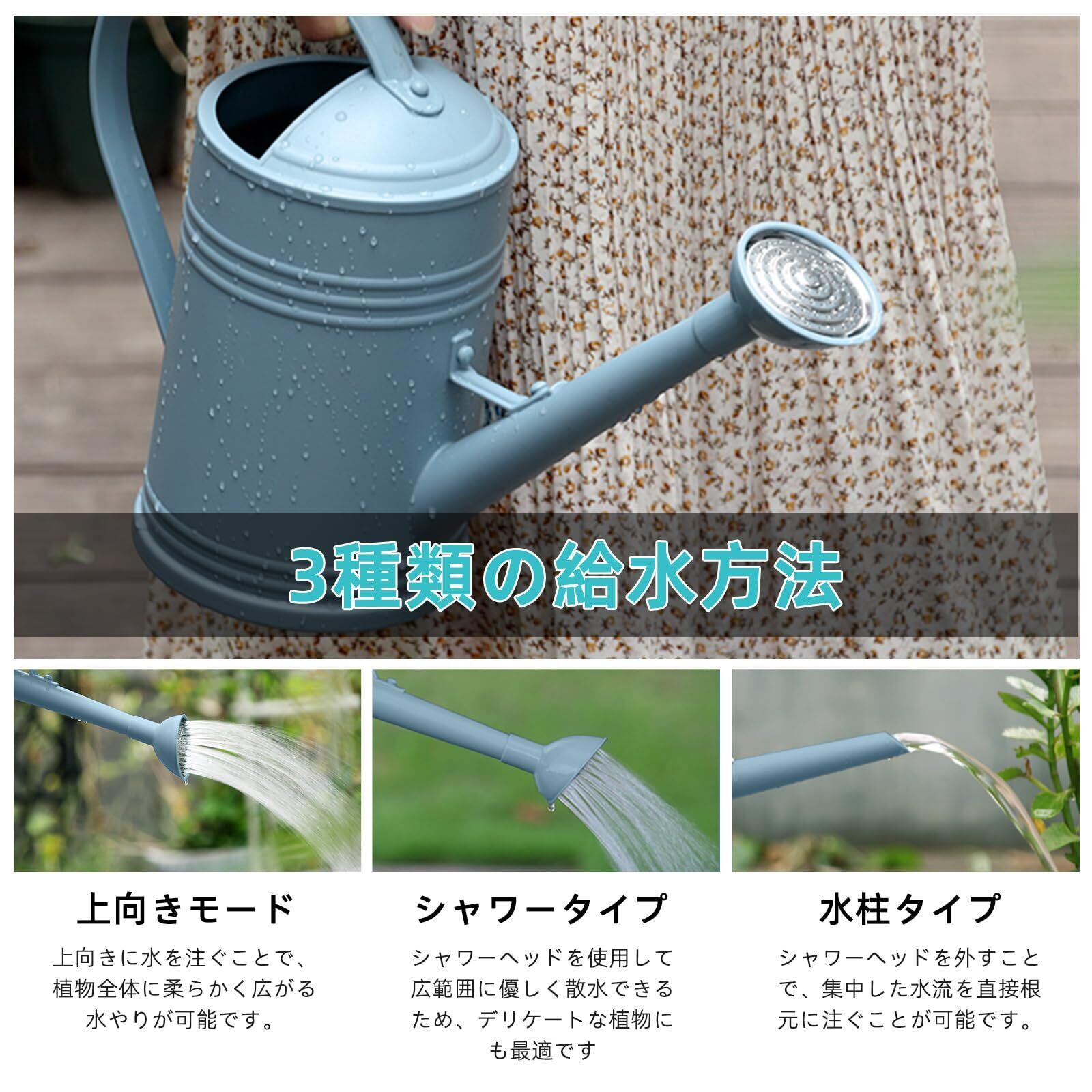 【幅広い用途】このじょうろは、シンプルでありながらもファッション性を重視したデザインが特徴です。スタイリッシュなフォルムとカラーリングで、ガーデニング作業中も見た目にこだわりたい方にぴったりです。どんな空間にもマッチするデザインは、インテリアの一部としても活躍し、使うたびにガーデニングの楽しさを高めてくれます。