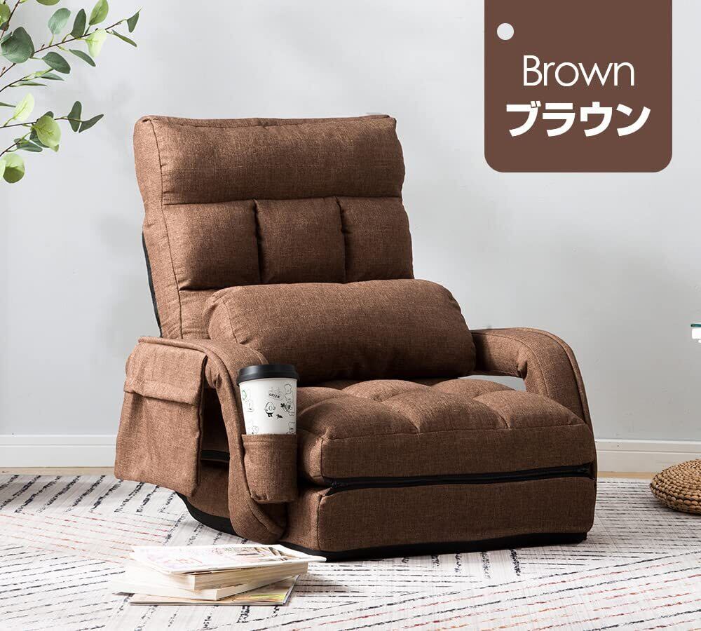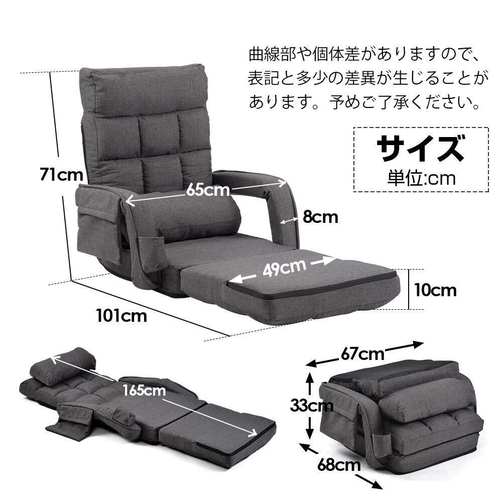 アピール情報: 【4wayで使える座椅子】シーンや体勢に合わせて座椅子の形を変えられます。 【安心の日本製ギア、14段階調節可能】背もたれ部分にKoYo製の14段階ギアを採用します。 【肘掛け付きでより快適】肘掛けにクッションがたっぷり。 【小物収納設計】片側に収納袋とカップバッグが付きます。 【ファブリック生地】ファブリック素材を使用していて一年中快適に使えます。 【高品質な座り心地】厚さ約20cmの座面で、体圧をバランスよく分散させることで体にフィットできます。 【移動楽々】女一人でも簡単に運べます。 【折りたたむと、よりコンパクトに】折りたたむとコンパクトにまとめられます。 【クッション×1付き】本体と同色のクッションが付属します。