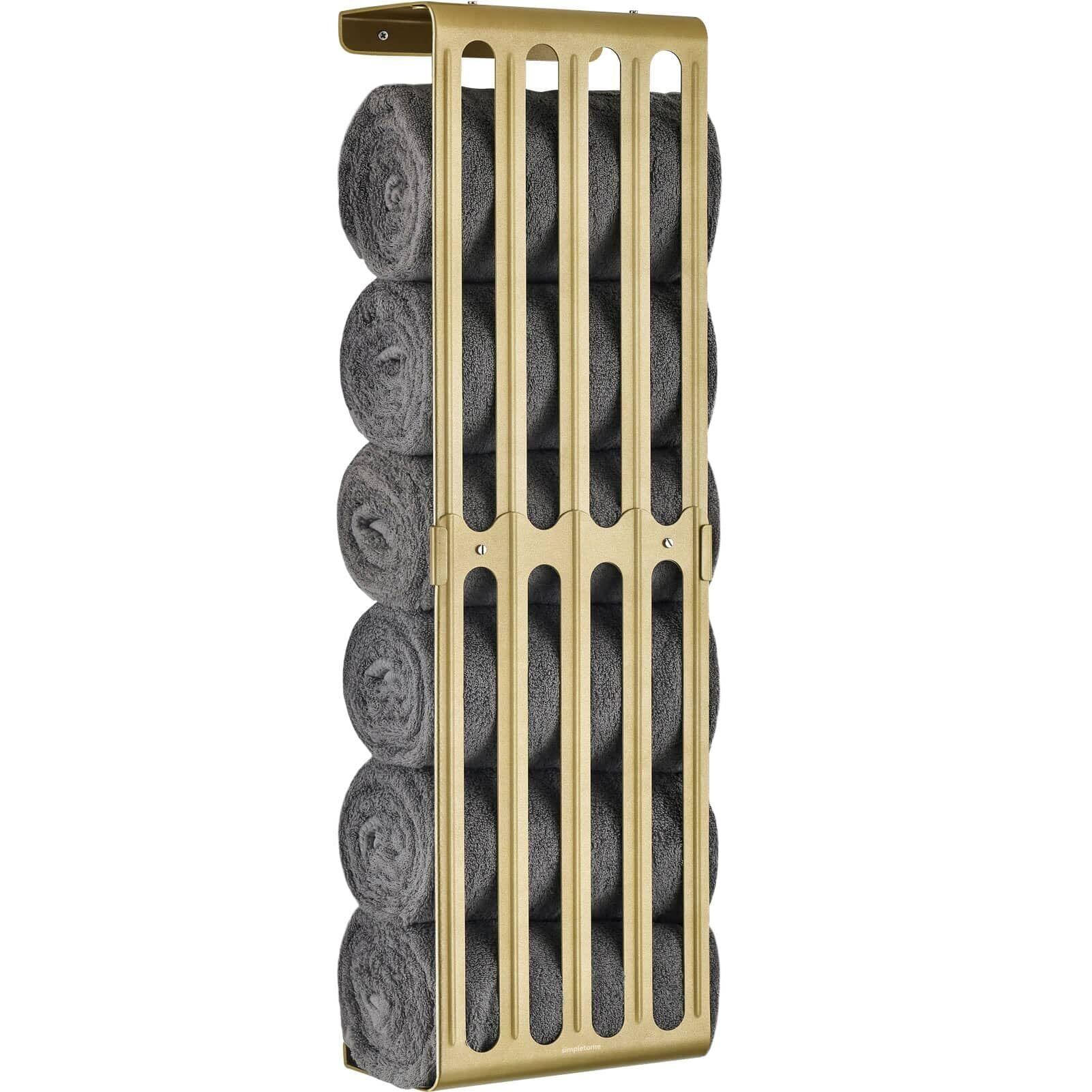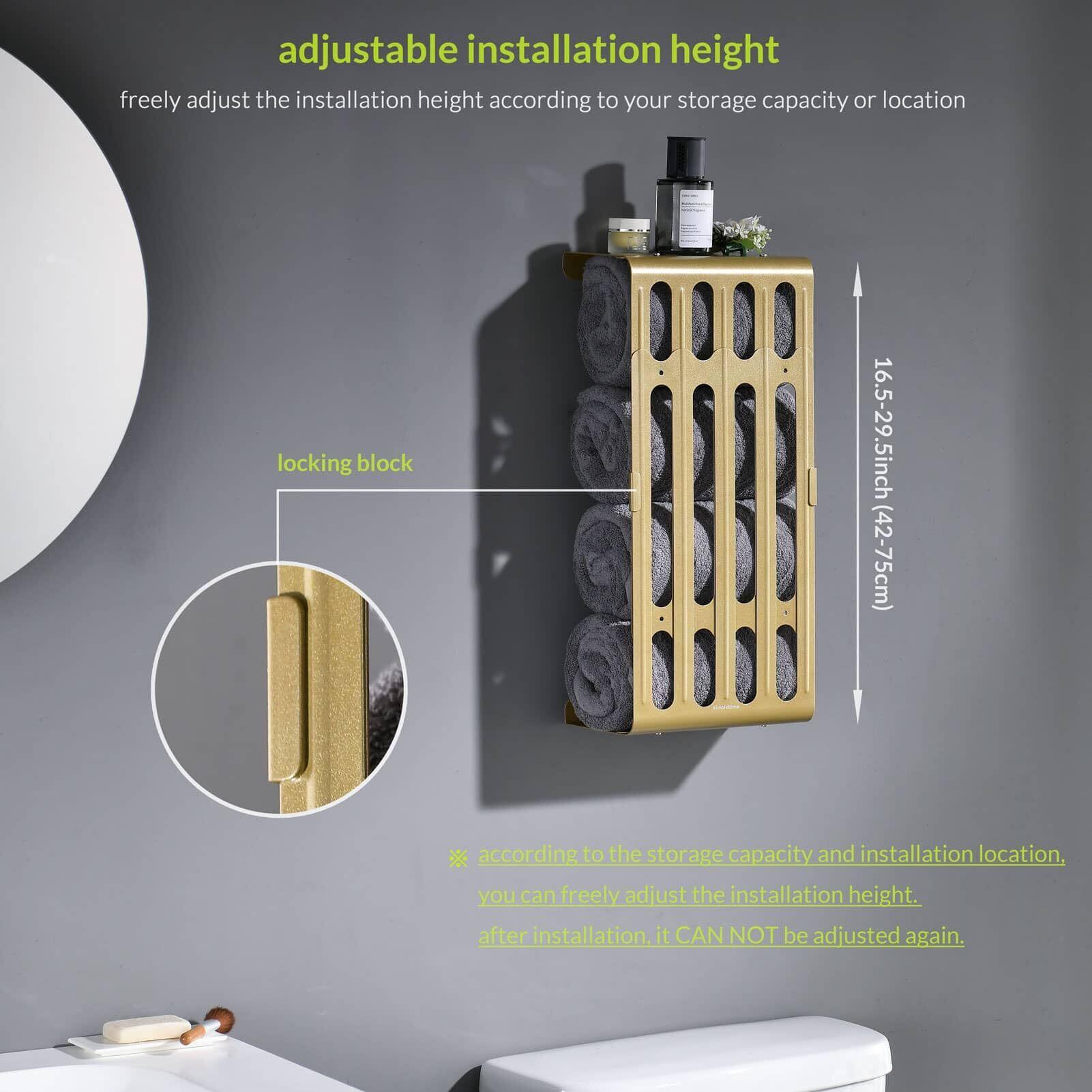 simpletome バスタオル 収納 タオルラック高さ調節可能 壁掛け式 バスルーム 棚 オーガナイザー カーボンスチール (ウォームゴールド)