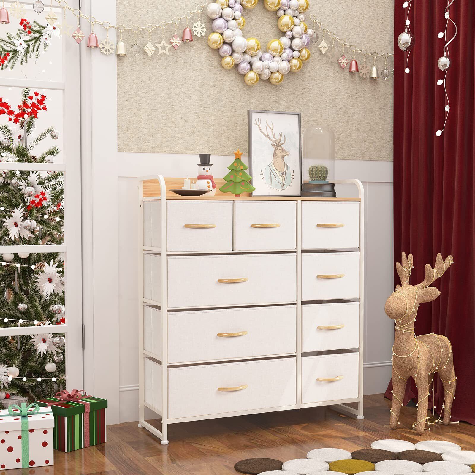 LYNCOHOME チェスト タンス 布製 ベージュ 収納 引き出し 簡単組立 多機能 衣類収納 大容量4段9杯