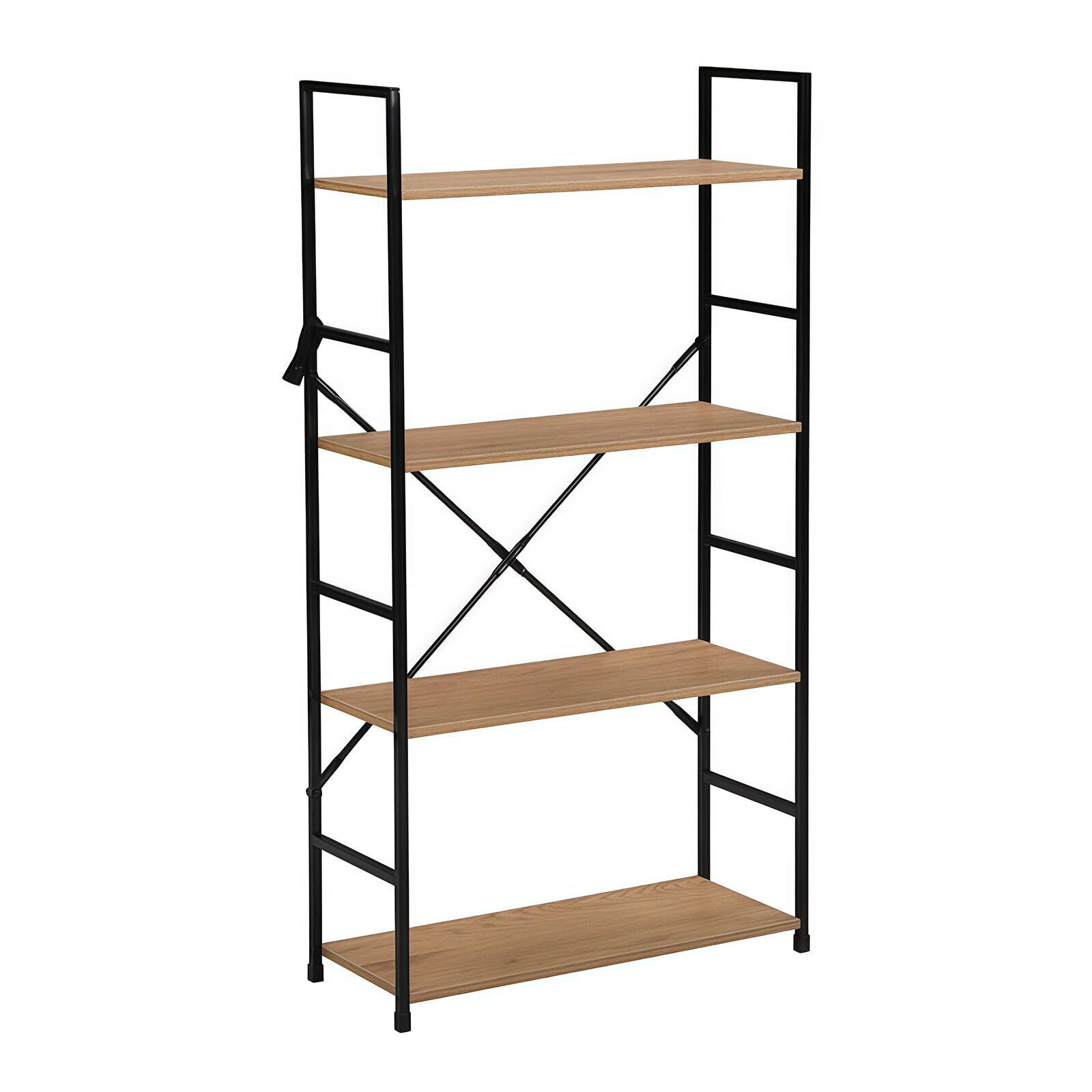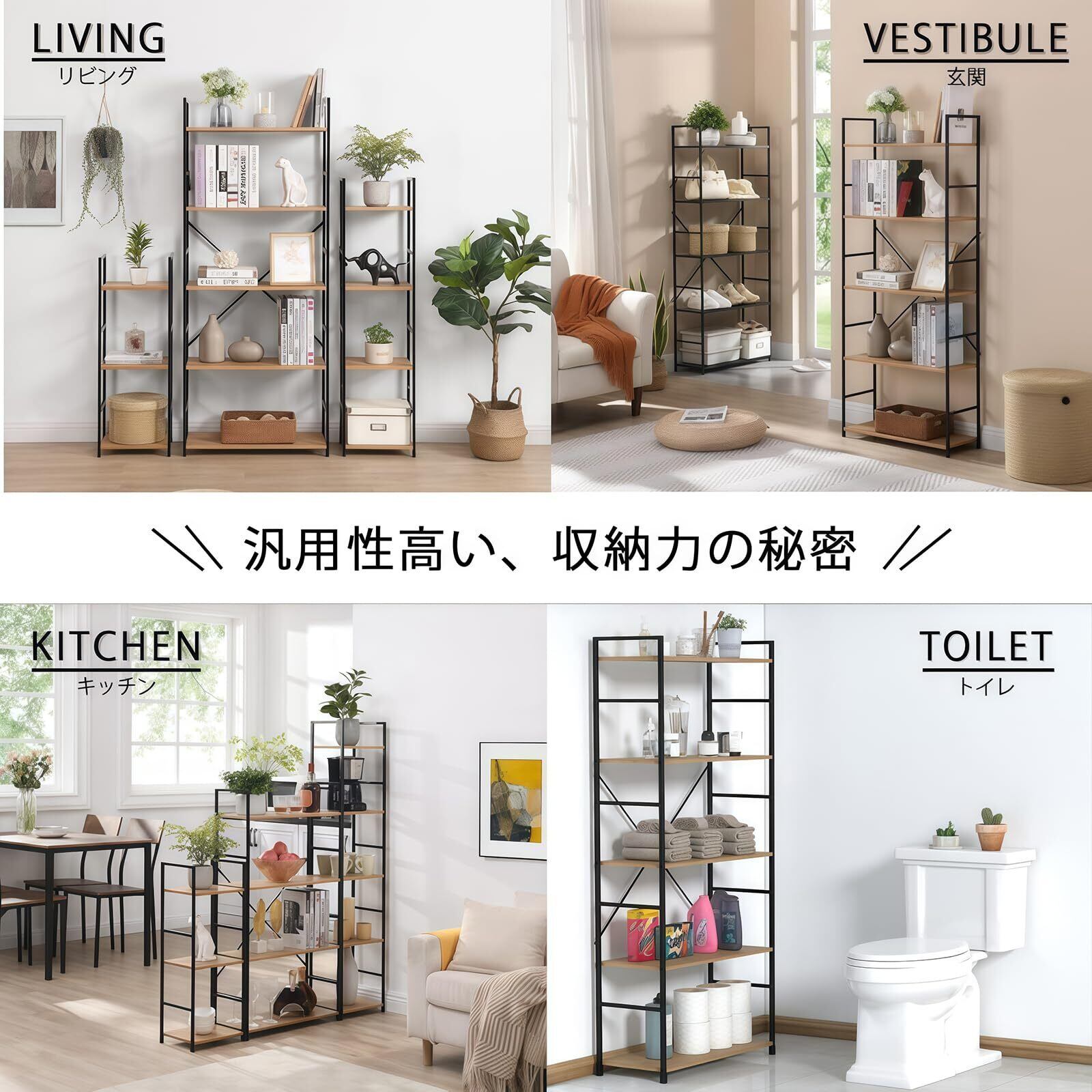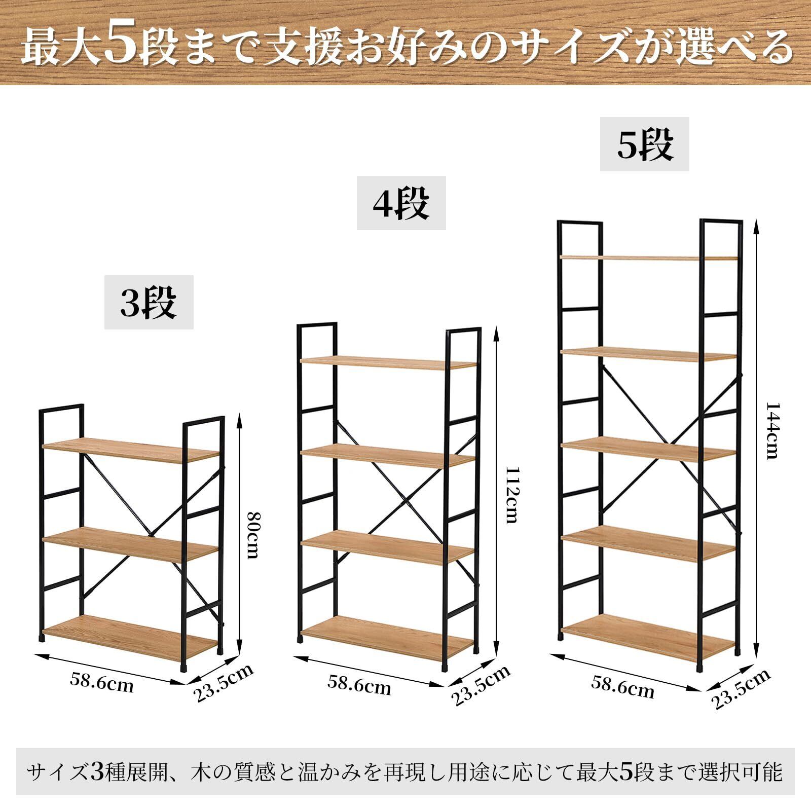 オープンシェルフ ラック 棚 本棚 おしゃれ 多機能収納ラック スリム 隙間収納 木製棚板 スチール 幅58.6×奥行23.5×高さ112cm 4段 組立品 寢室 リビングルーム ホームオフィス オーク色×ブラック