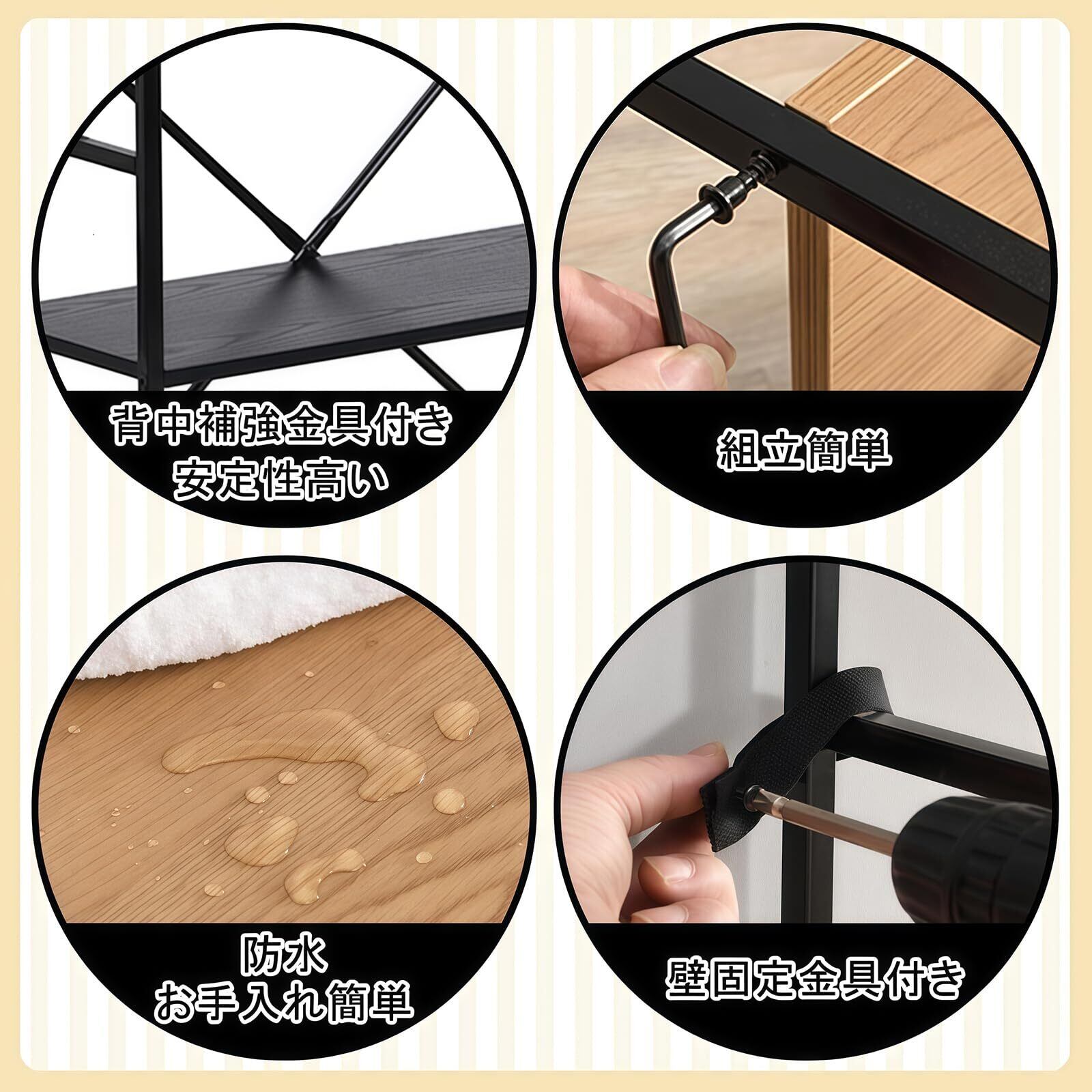 【安定性&耐久性】クロスバー補強金具あり、背面のクロスバー補強金具で更に安定性をアップします。頑丈な金属で作られており、傷がつきにくく、耐熱性と防水性を備えています。本棚の安定性を確保するために底部に4つの保護キャップ。