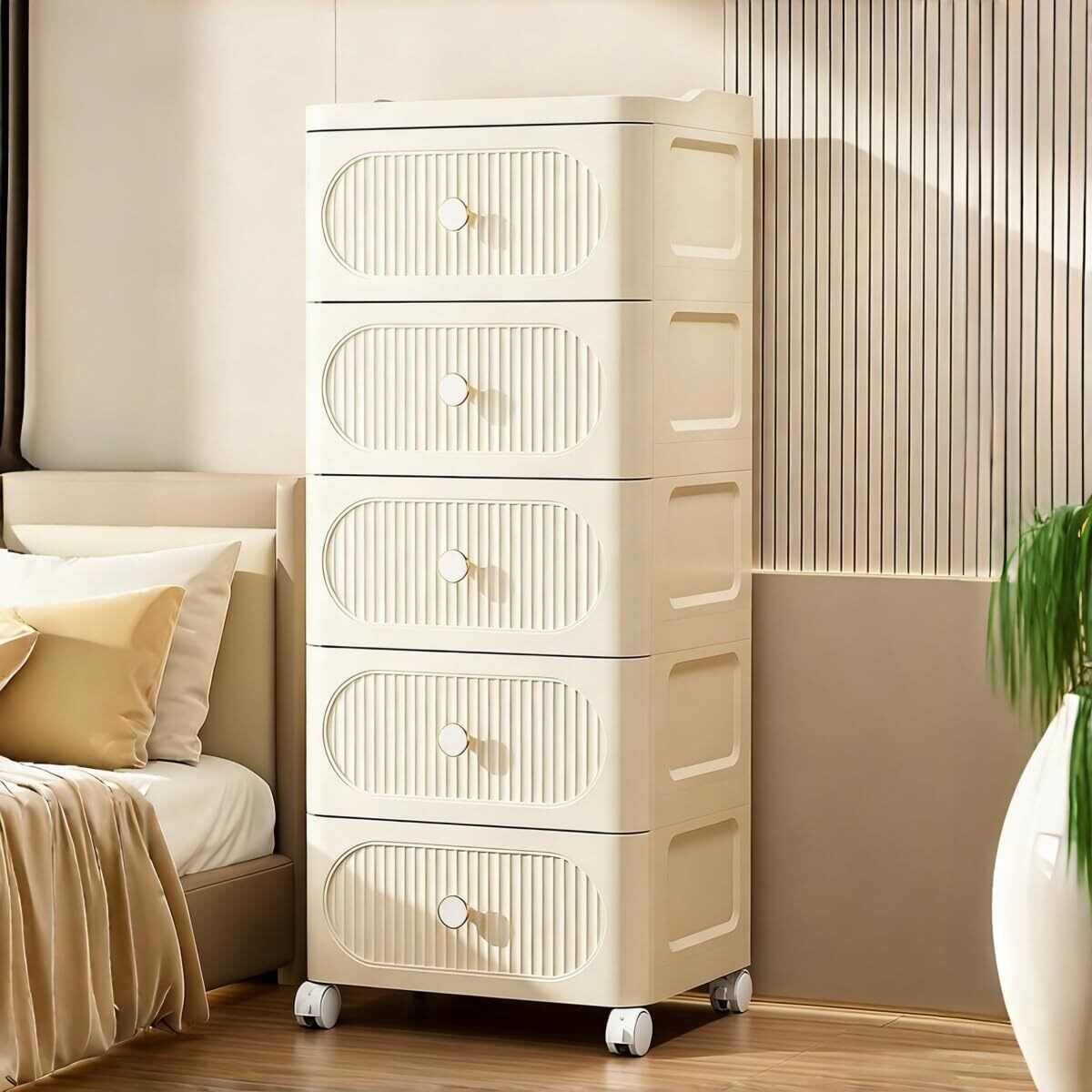 チェストとして多機能:キャスター付き収納ボックスで家中をスマートに整理。寝室では洋服収納に、リビングでは棚収納として、書類や小物をすっきり収納。水に強い設計で浴室のタオル収納にも最適です