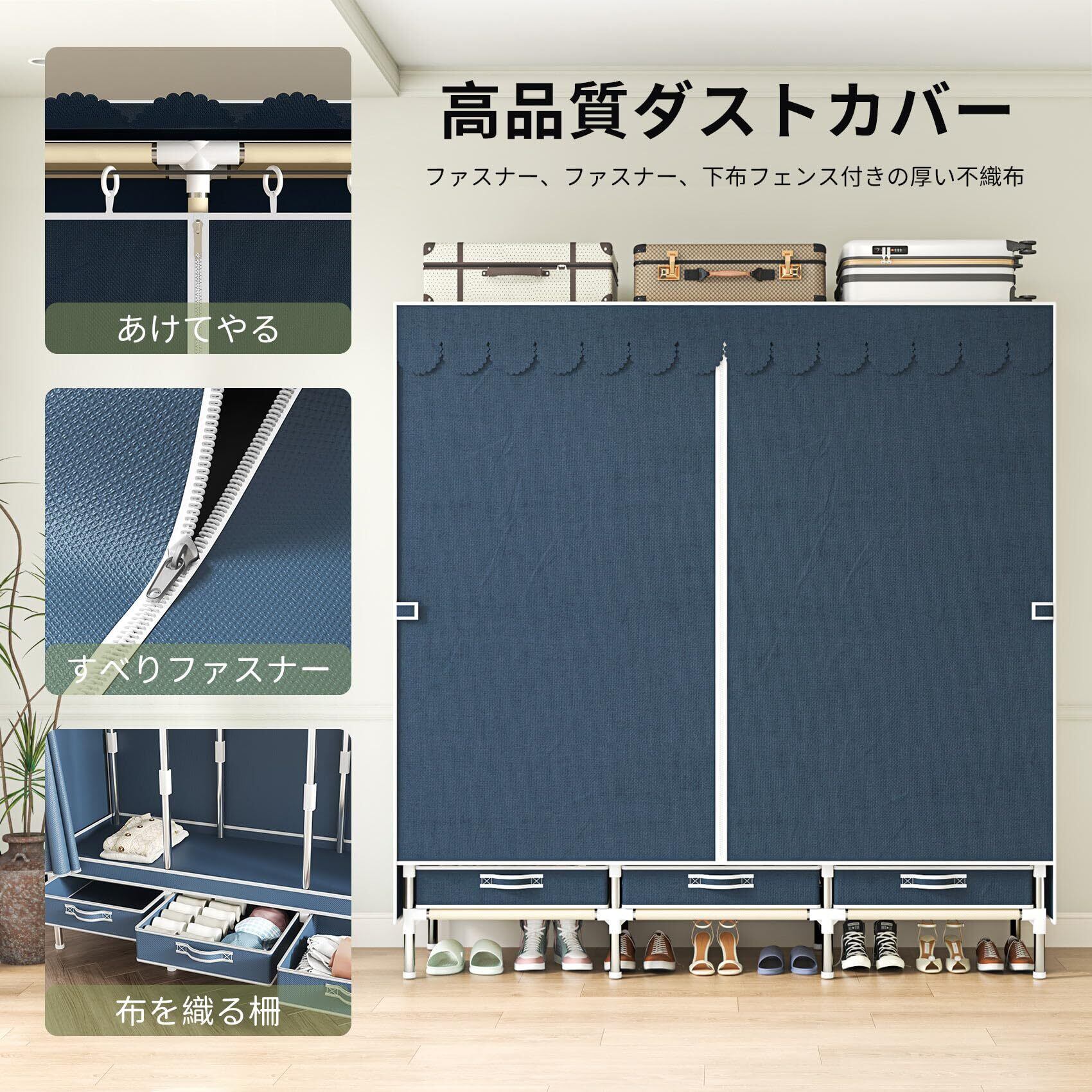 ポータブル ブルー 自立式 戸棚 ワードローブ クローゼット 引き出し3つ付き モダン 大型 寝室 金属製 衣類 ワードローブ収納ラック 衣類を掛ける 丈夫で頑丈 自宅の小さな部屋用