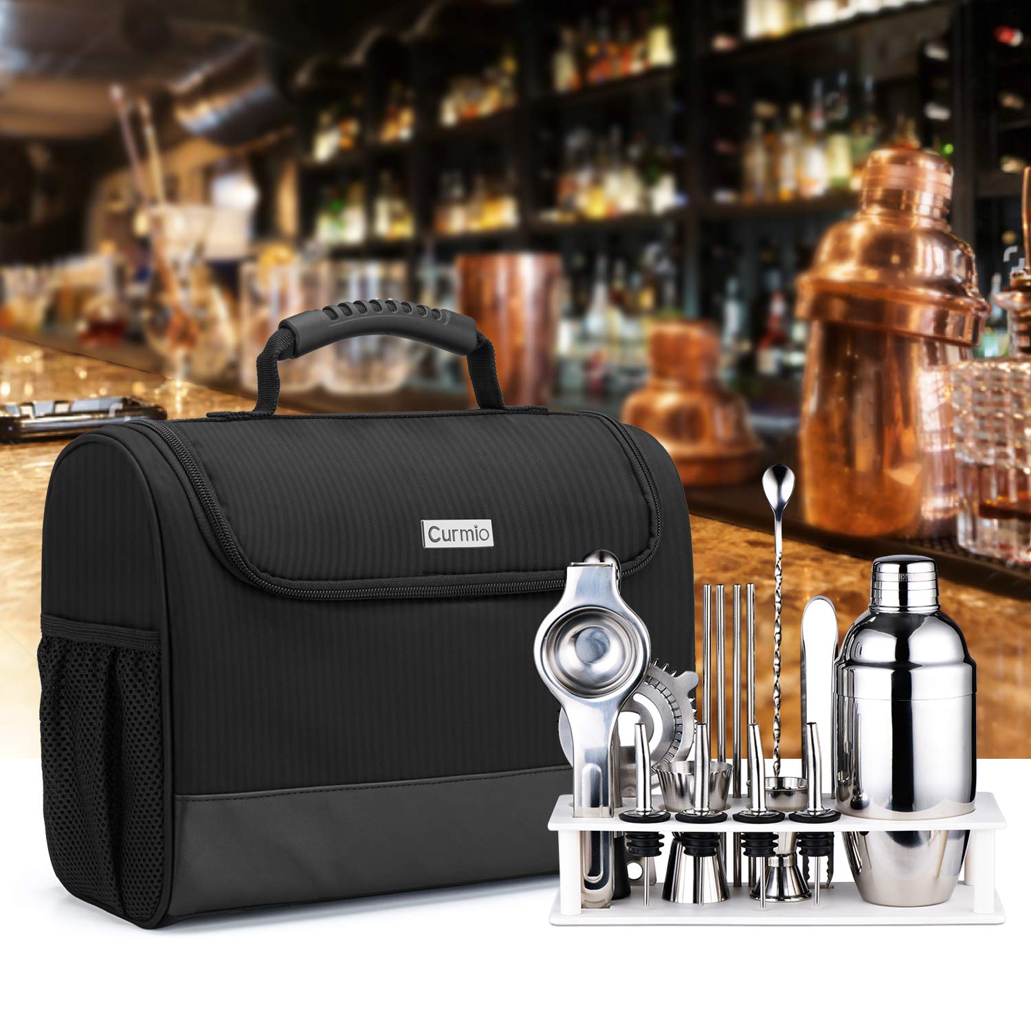 CURMIO バーテンダーバッグ カクテルセット 収納 持ち運び ケース (バッグのみ) 黒
