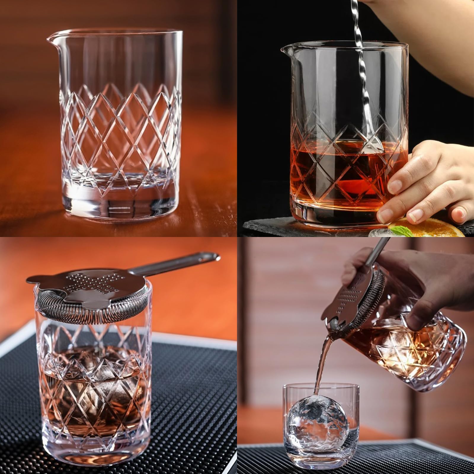 ハイエンドのシームレスデザイン:ミキシンググラスは非常に透明な無鉛ガラス製、安価な機械製ミックスグラスのようにひび割れません。ミキシングチップの底を厚くし、重みを持たせることで、ミキシング体験を最大限に高める。ミキシンググラスはホームバーテンダーが本物のプロのような友人のグループのために飲み物を混ぜるのに最適です。