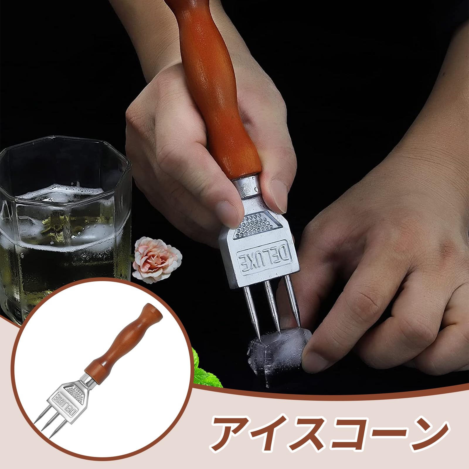 【用途】このアイスピックツールは、プロのバーテンダー、バー、キッチンに適しています。このアイスピッケルは効果的に氷を割って砕くことができ、非常に便利なバーツールです。