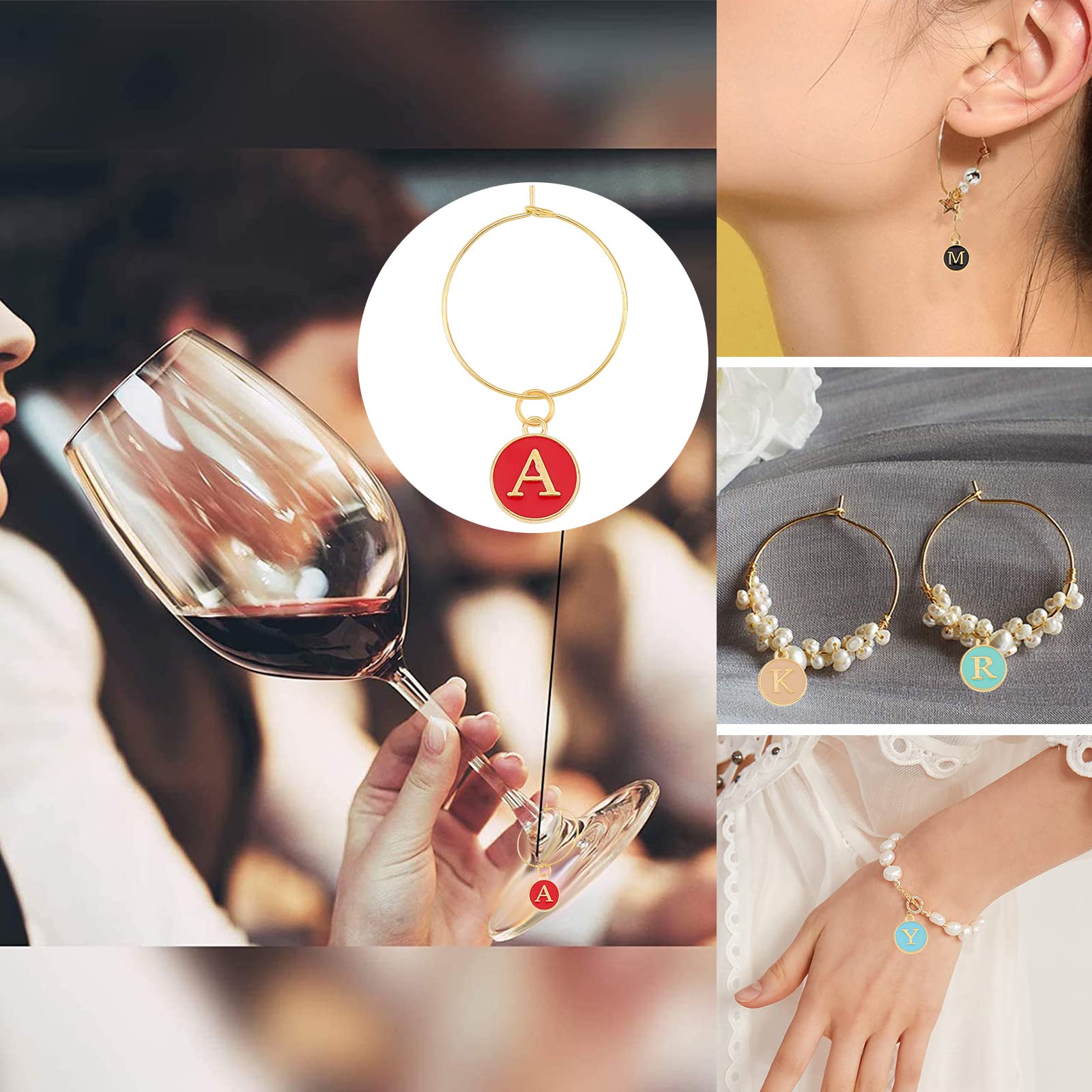 【自分だけ】:アルファベットチャームは自分の名前を書くことができます。一目で自分のワイングラスを見つけることができます。