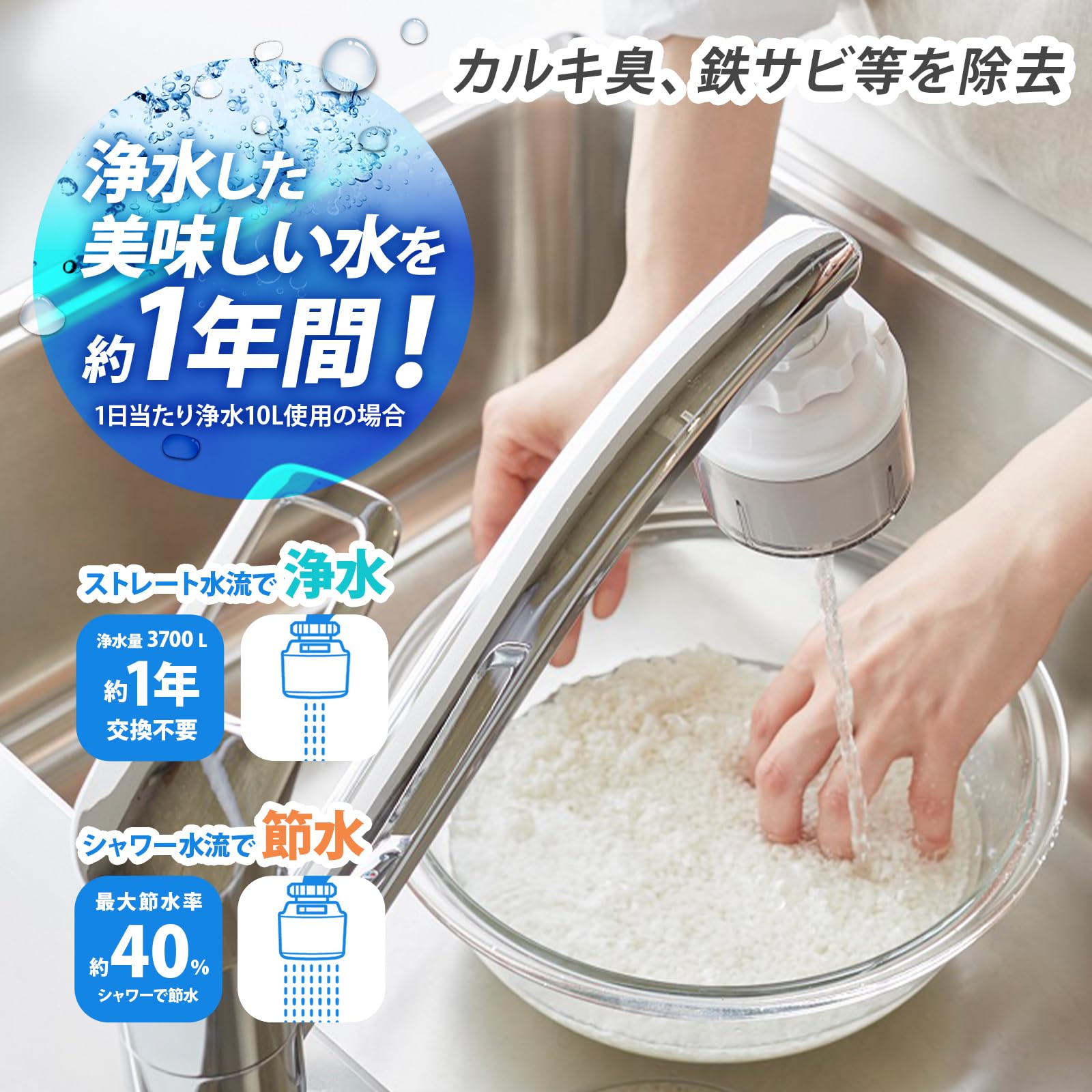 カルキ(塩素)臭やカビ臭、鉄サビ、ゴミ等を除去し、おいしい水がいつでも飲めます。