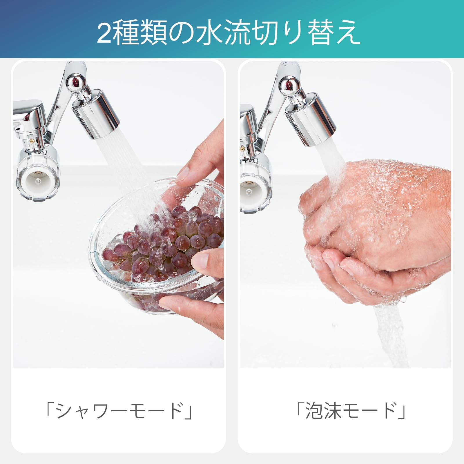 「2種類の水流」吐水口の先端を回すだけでシャワーと泡沫の切り替えが簡単です