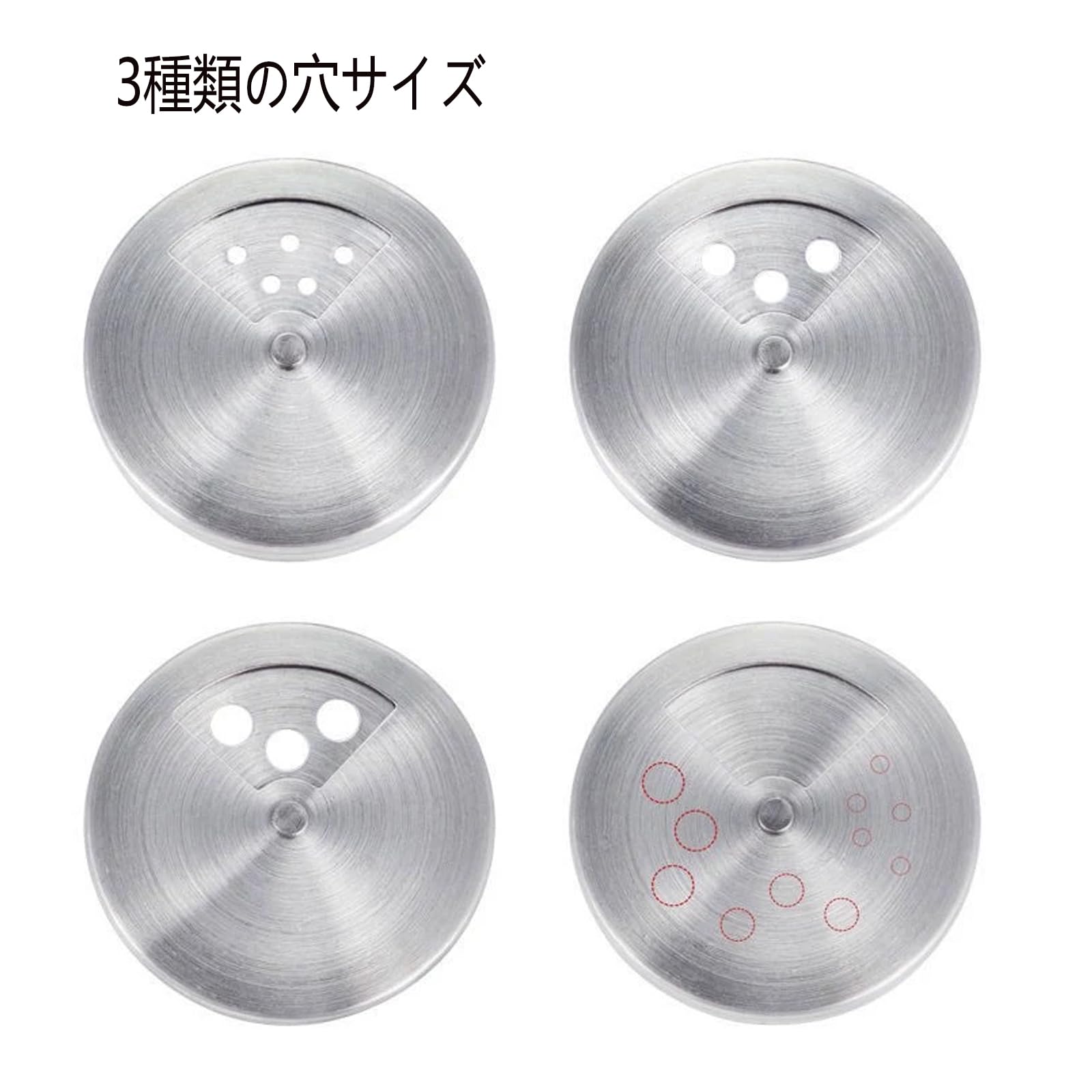 【粉ふり】穴のサイズは3つあり、自分の好みに合わせて追加する調味料の数をコントロールできます。蓋は長時間新鮮なままで、ほこりや湿気を防ぐことができます。透明なボトル本体は、いつ再充填できるかを示します。