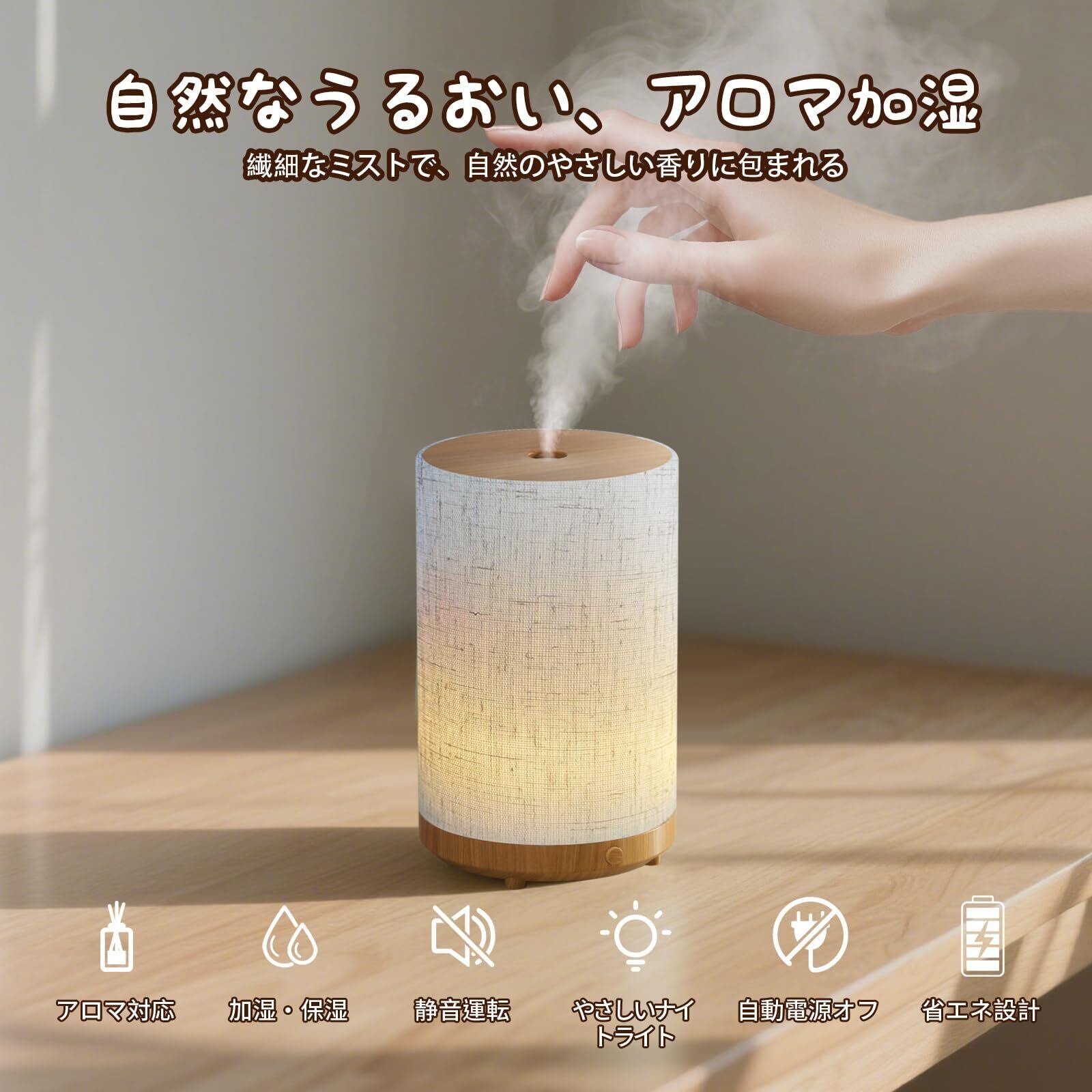 特徴 アロマディフューザー, ナイトライト, 水位窓, 静粛性