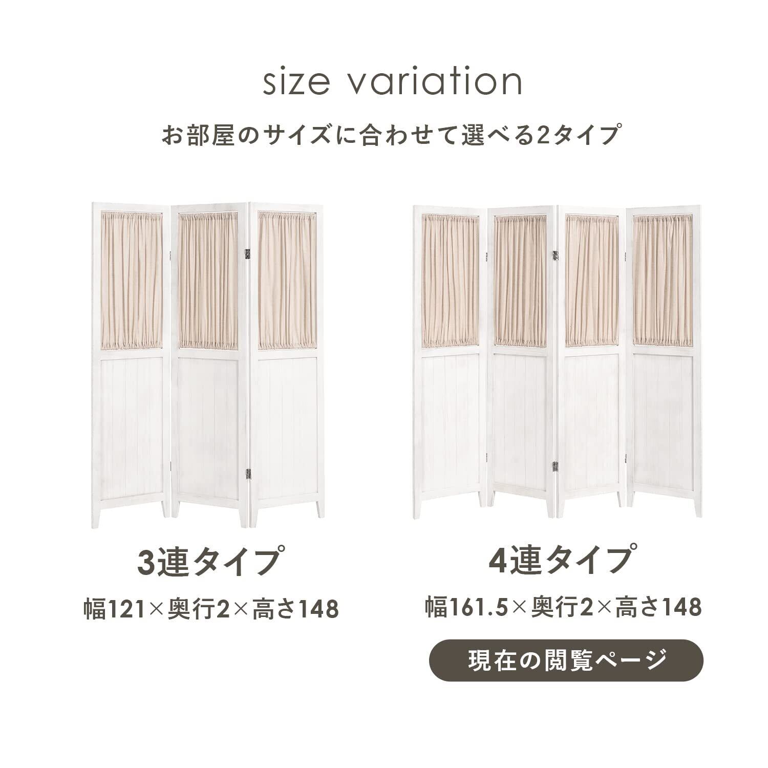 萩原 パーテーション 間仕切り 4連 スクリーン 目隠し 背景 アンティーク調 カーテン付き 360度 天然木 幅161.5 奥行2 高さ148 アンティークホワイト MS-6214AW