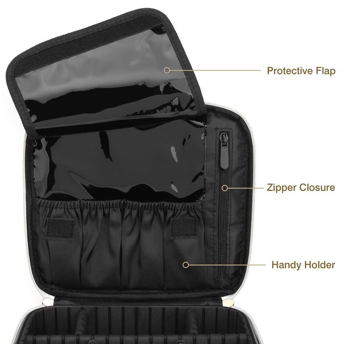 プロ用 メイクボックス Luxspire コスメボックス メイクブラシバッグ 化粧ポーチ コスメポーチ メイクポーチ 仕切り 持ち運び 防塵 收納 置き方調整可能 通勤・出張・旅行用 機能的收納 大容量 置き方が調整できる 衝撃吸収 化粧品収納 収納ケース 大型 母の日 White Marble