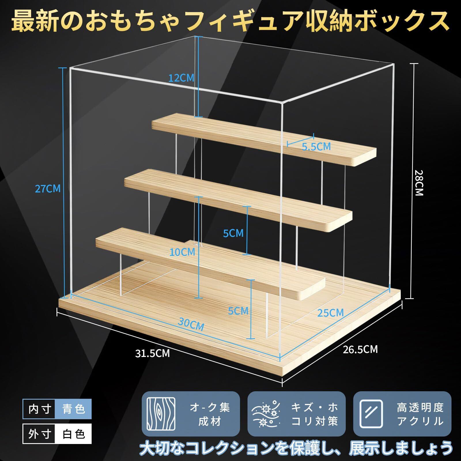 【ビジュアルアップグレード】 このディスプレイケースは、高透明で紫外線防止機能を備えたアクリル素材を採用しています。アクリル越しでも収蔵品の細部まで鮮明に見えるほか、ガラス並みの95%以上の高透過率と木製土台により、収蔵品の自然な質感を最大限に引き立てます