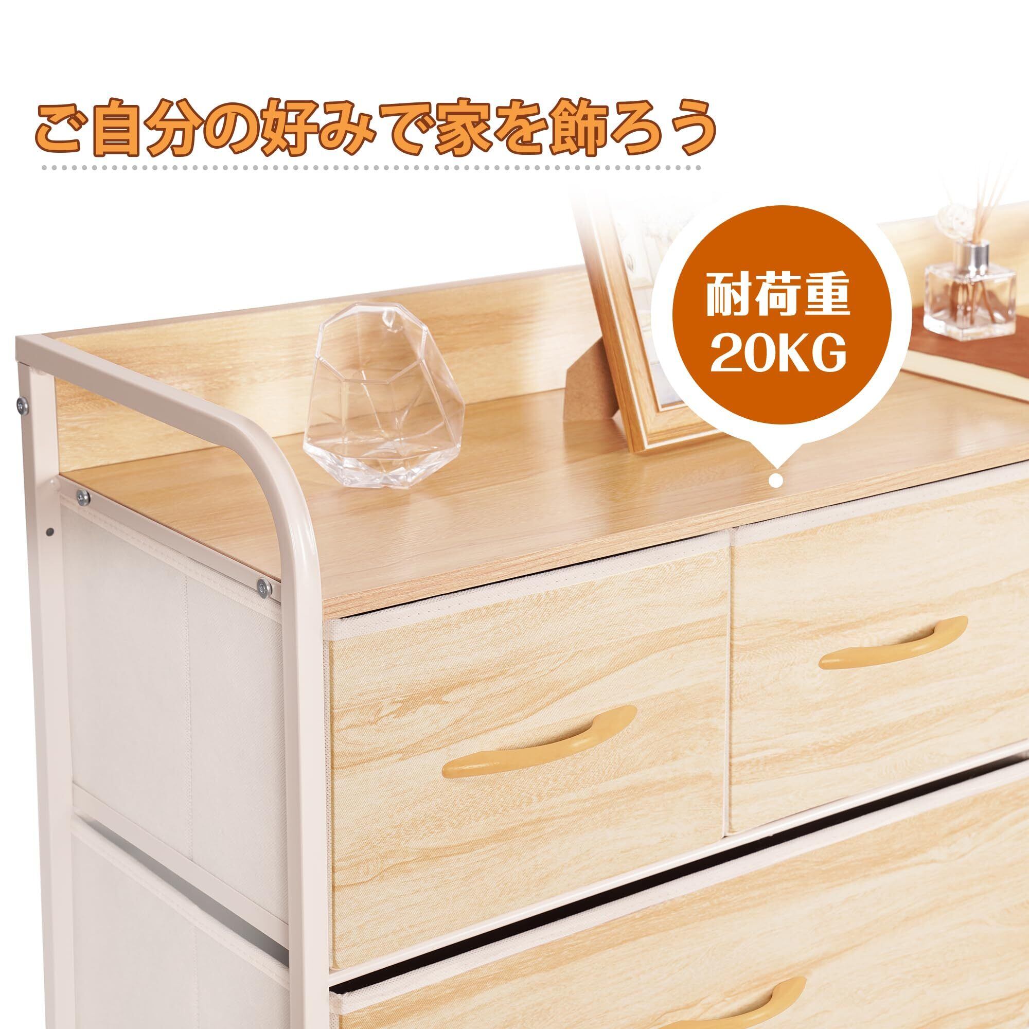 LYNCOHOME 収納 チェスト タンス 布製 引き出し ナチュラル 衣類収納 マルチ収納 転倒防止 低ホルム 4段9杯