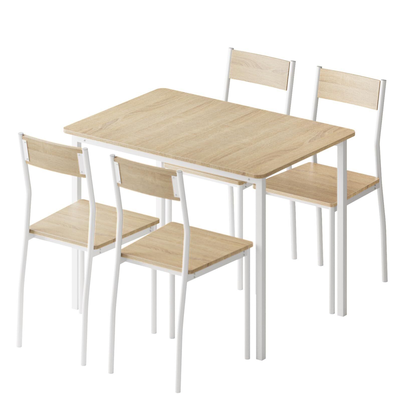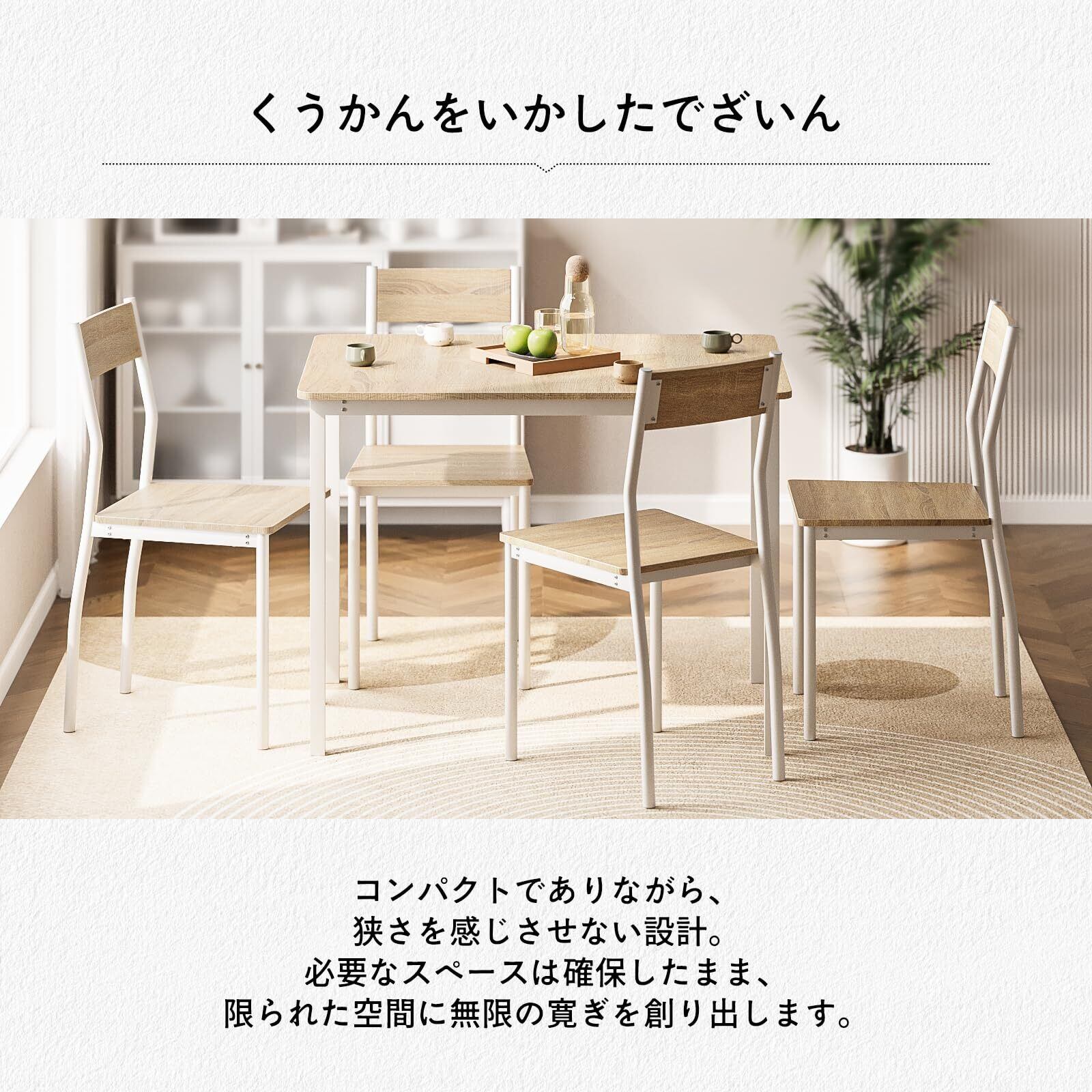 APPOLYN ダイニングテーブル 4人用 テーブルセット 机椅子セット 一人暮らし 幅110cm 広々木製天板 スチール脚 5点セット 食卓 リビング用 ナチュラル×ホワイト