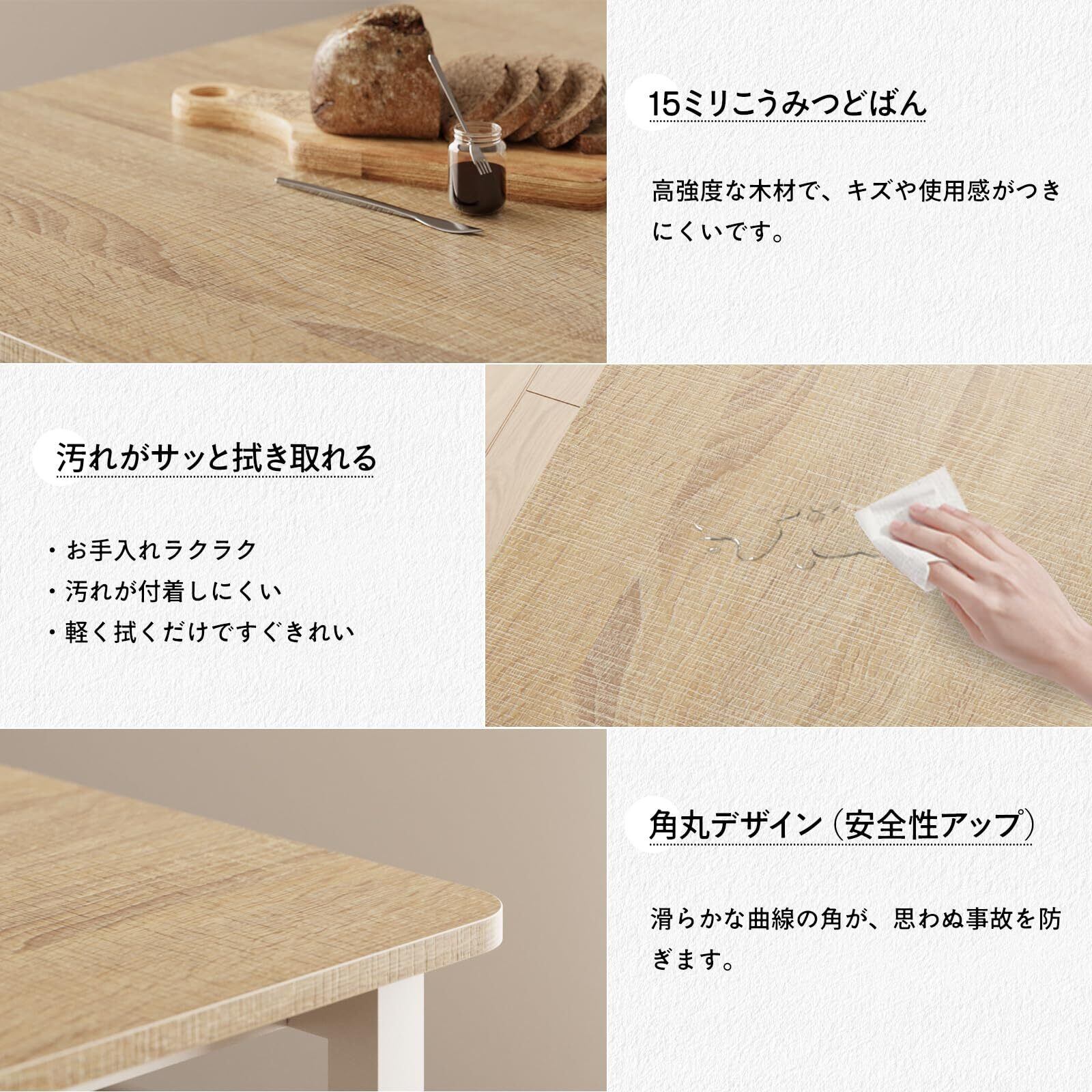 【頑丈な構造と床保護設計|日常使いに安心のダイニングテーブル品質】 ダイニングテーブルの天板には高級耐摩耗木板、脚部には強靭なスチールフレームを採用。傷に強く、耐荷重性と安定性に優れています。全脚に標準装備の防音・床保護パッドが、フローリングを傷から守り、引きずり音も軽減。細部まで配慮された安心設計です。