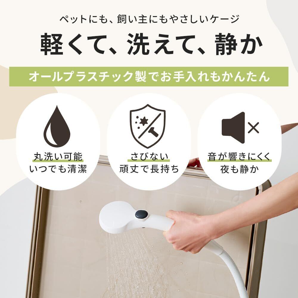 オールプラスチック製の室内用ペットケージです。プラスチック製なので[丸洗い可能/さびない/音が響きにくく]扱いやすい設計です。