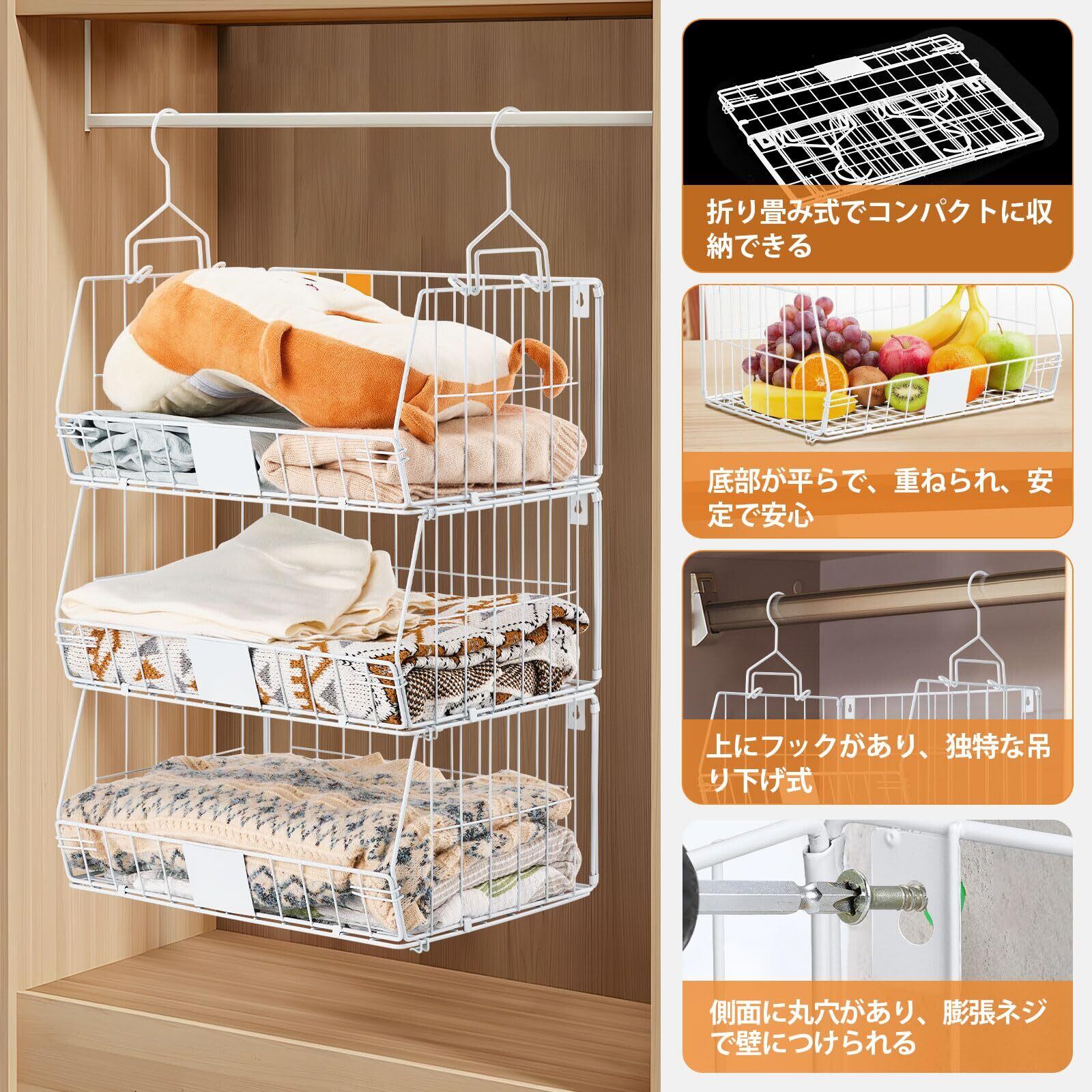 Fenghome 吊り下げラック 3個セット クローゼット収納 折り畳み式 2025新開発 衣類 複数連結 棚 コンパクトに折り畳める 戸棚下大容量 収納ラック キッチン収納 ラック キッチン用 バスルーム用 台面整理 本置き つりとだな下収納 ラックひっかける 収納用品 しっかりしています(ホワイト)