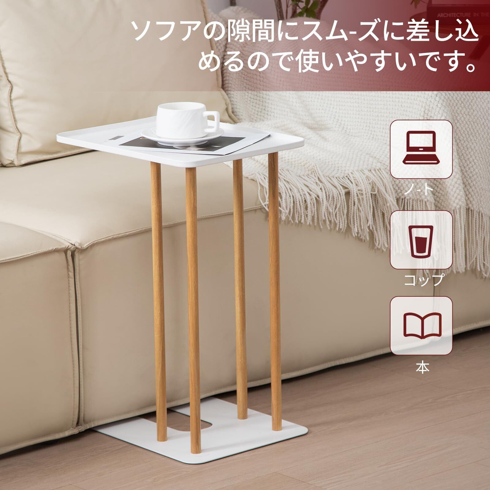 差し込み サイドテーブル コの字型デザイン 多機能 テーブル 木目調 おしゃれ 金属製ミニテーブル 30 x 40 x 57cm(ホワイト)