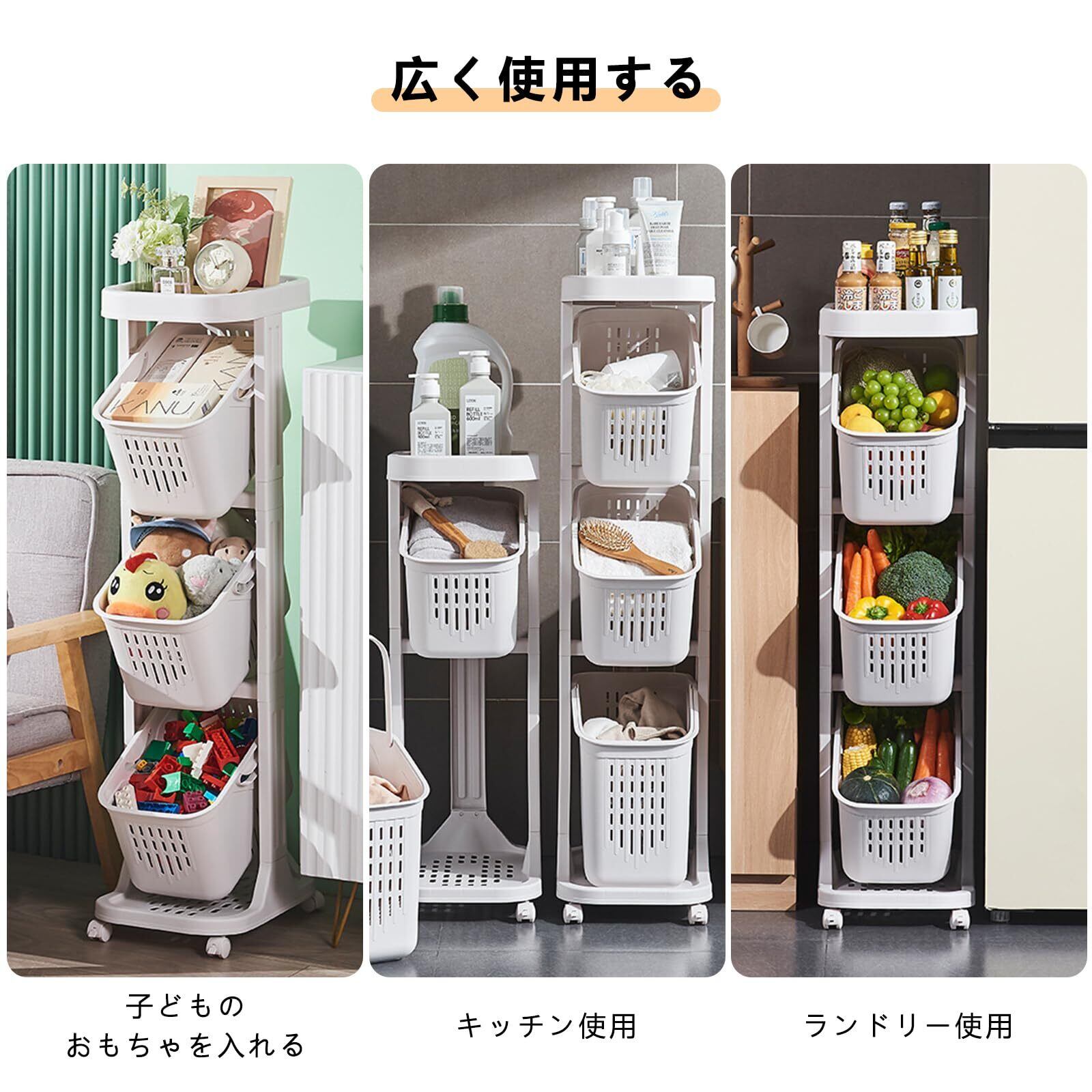 ランドリーバスケット 4段 隙間収納 ランドリーワゴン 洗濯籠 脱衣所 ランドリーラック 北欧 ランドリー 収納 キャスター付き取り外し 簡単な組み立て レクエア ランドリー バスケット (四階)