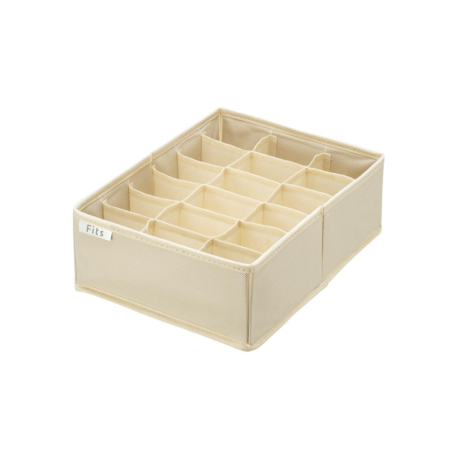 収納ケースの中を整理整頓できる布製ボックスです。18マスに分かれているので、靴下やハンカチ、子供用グッズ(スタイやよだれカバー)など小物の整理におすすめです。