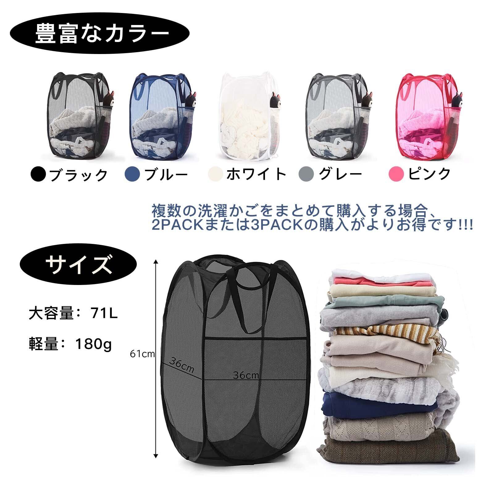 TECHMILLY ランドリーバスケット 折りたたみ 洗濯カゴ 大容量 71L メッシュ 省スペース ランドリーバッグ 収納 洗濯物 袋 かご 持ち運び可能 軽量 旅行 ゴミ箱 幅さ36CM長さ36CM高さ61CM (ブラック、1PCS)