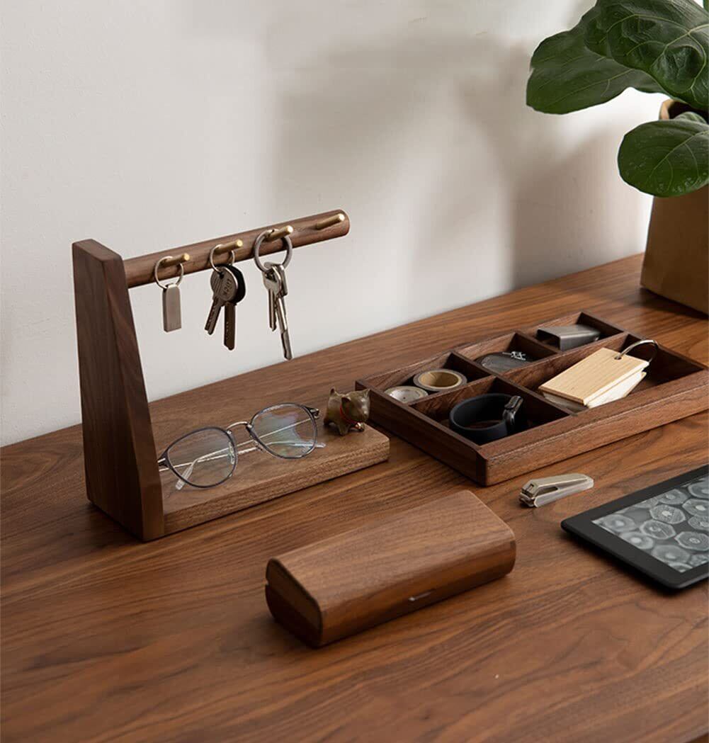 鍵置き 玄関 アクセサリースタンド メガネスタンド 眼鏡収納 鍵ホルダー 木製 鍵収納 小物入れ おしゃれ キーフック 玄関収納 インテリア クルミ材