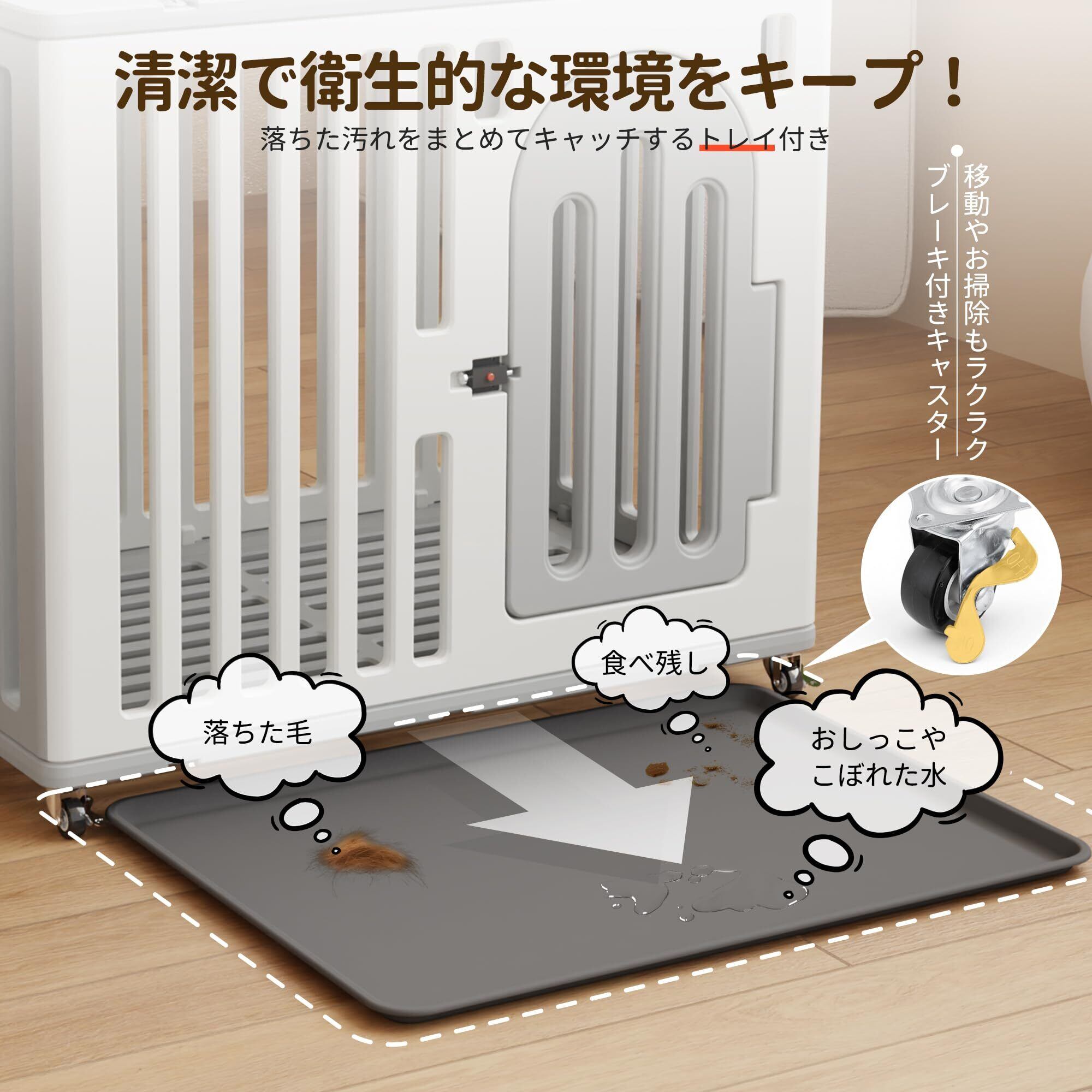 犬 ケージ MAZOT ペットケージ キャスター付き 犬 ゲージ 中型犬 大型犬 室内 屋内用 掃除しやすい 2段式ドア 引き出しトレー付き 組み立て簡単 (85×58×72cm)