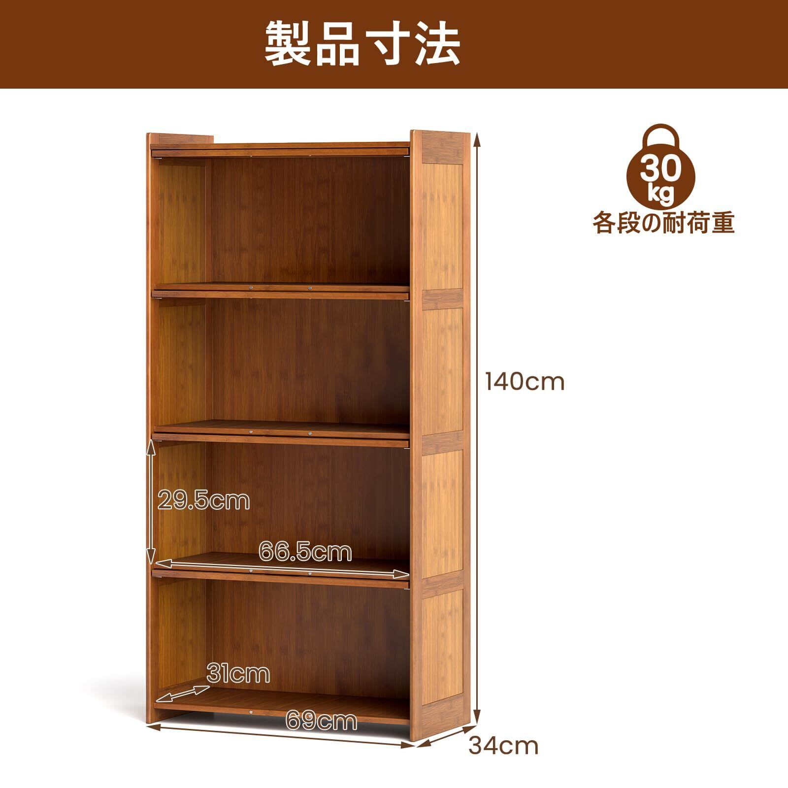 Goplus ディスプレイラック 4段式 本棚 竹製 収納棚 収納ラック 耐荷重20kg/段 おしゃれ 収納 棚 シェルフ ラック (ブラウン色)