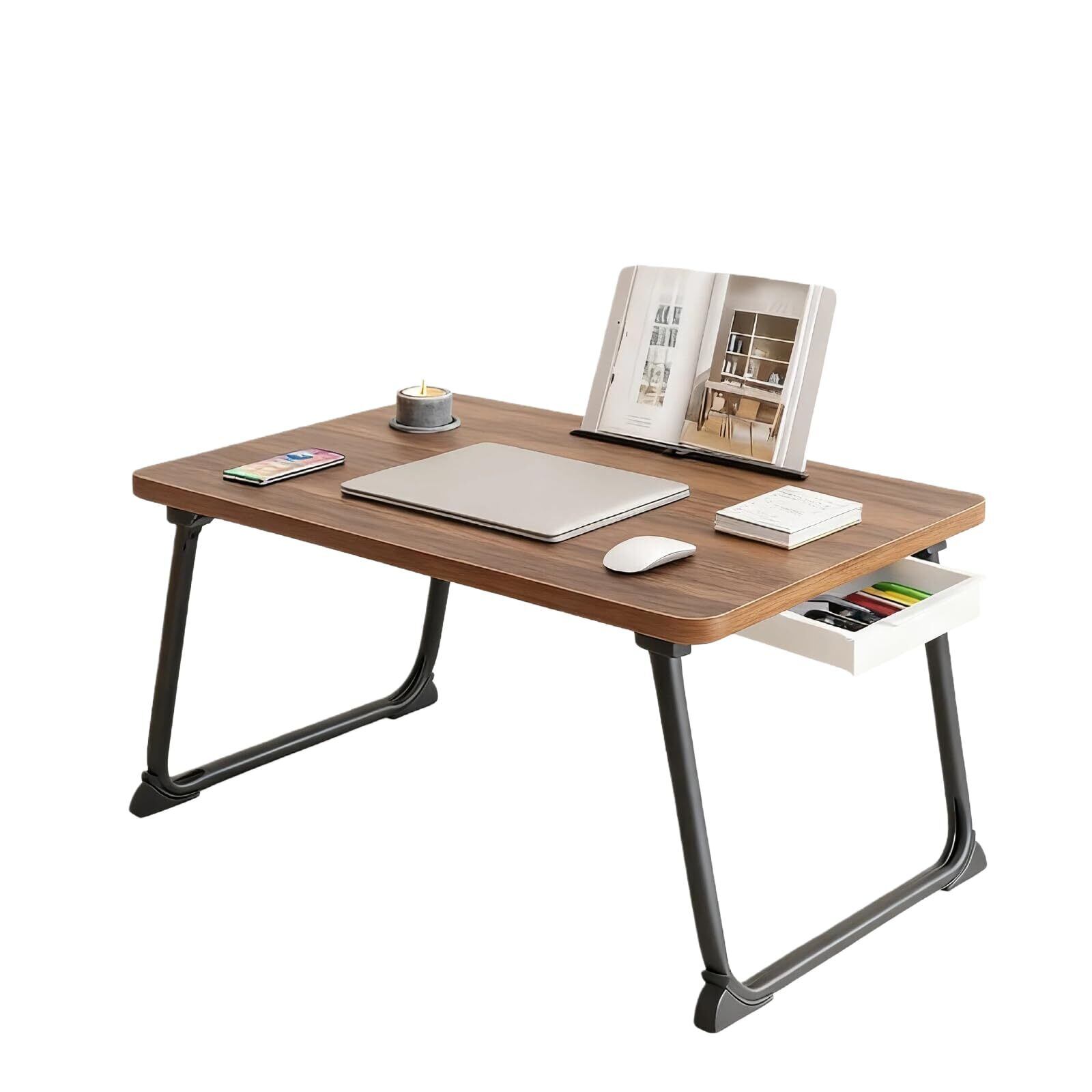 Melphoe 折りたたみテーブルコンパクトポータブル一人暮らし滑り止め処理軽量仕様多機能引き出し付き溝付き勉強ベッドソファ食事用折りたたみミニ長さ60 ×幅40 ×高さ28cm (ウォールナット)