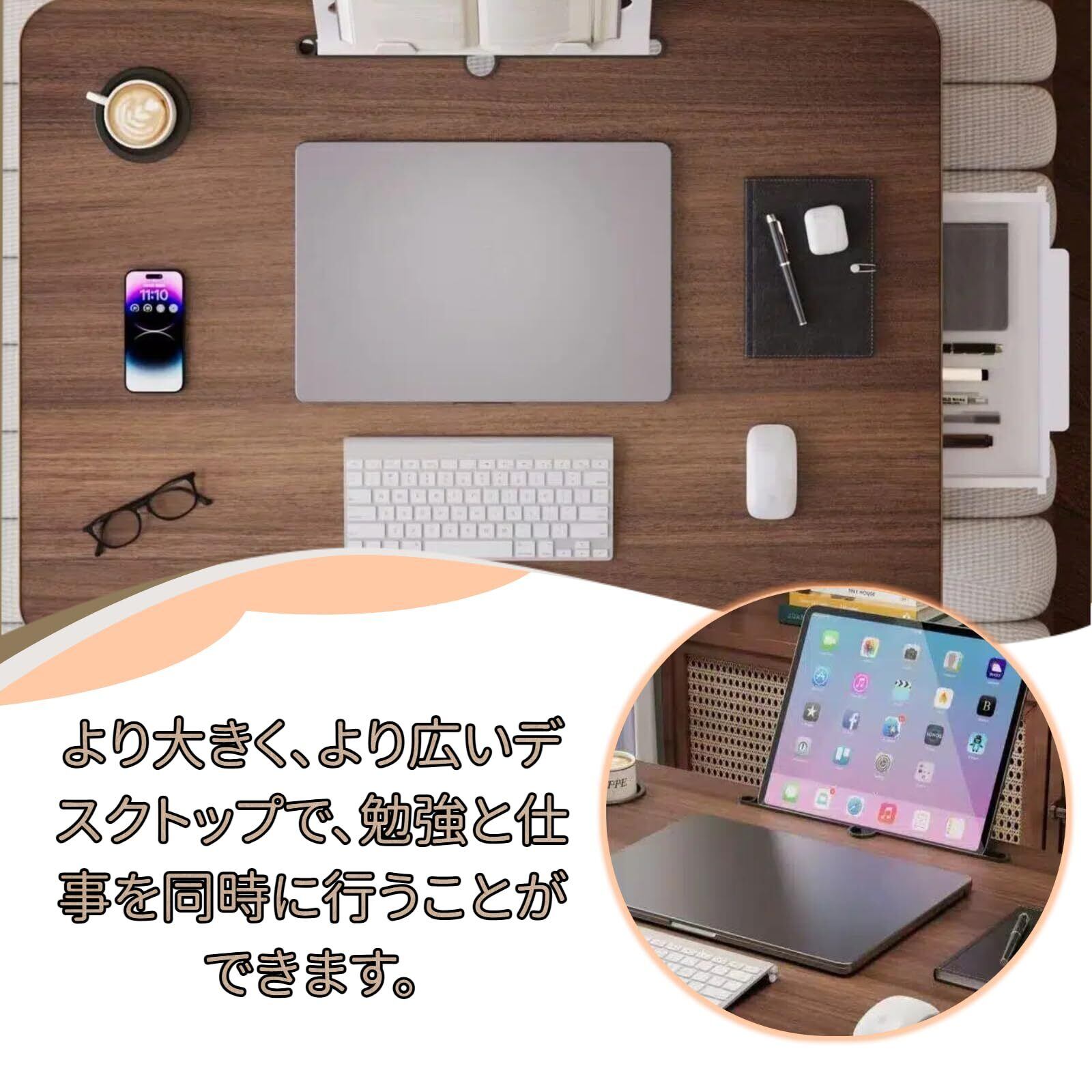 3、【良質耐力強い】折りたたみテーブルとして最高の耐久性を実現した高強度高密度シート!揺れ防止U字補強スチールフレームと滑り止めマットにより、ノートパソコンの作業や温かい飲み物を置いても安定して安心できます。