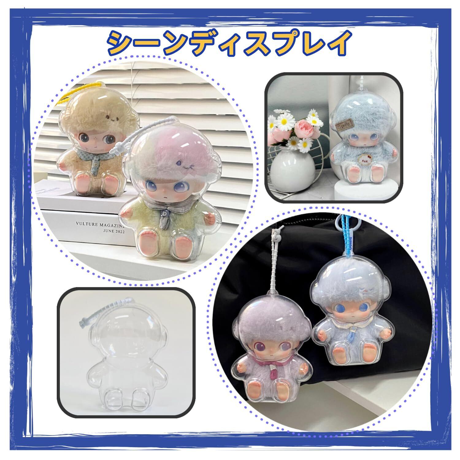 DIMOO Journal of New Life シリーズ用 プロテクティブディスプレイケース ビニールぬいぐるみ用 クリア アクリル 防塵カバー シリコンストラップ付 360°視認 耐傷性 黄変防止 ヒンジ式スナップ開閉 掛け置き兼用 コレクション展示用