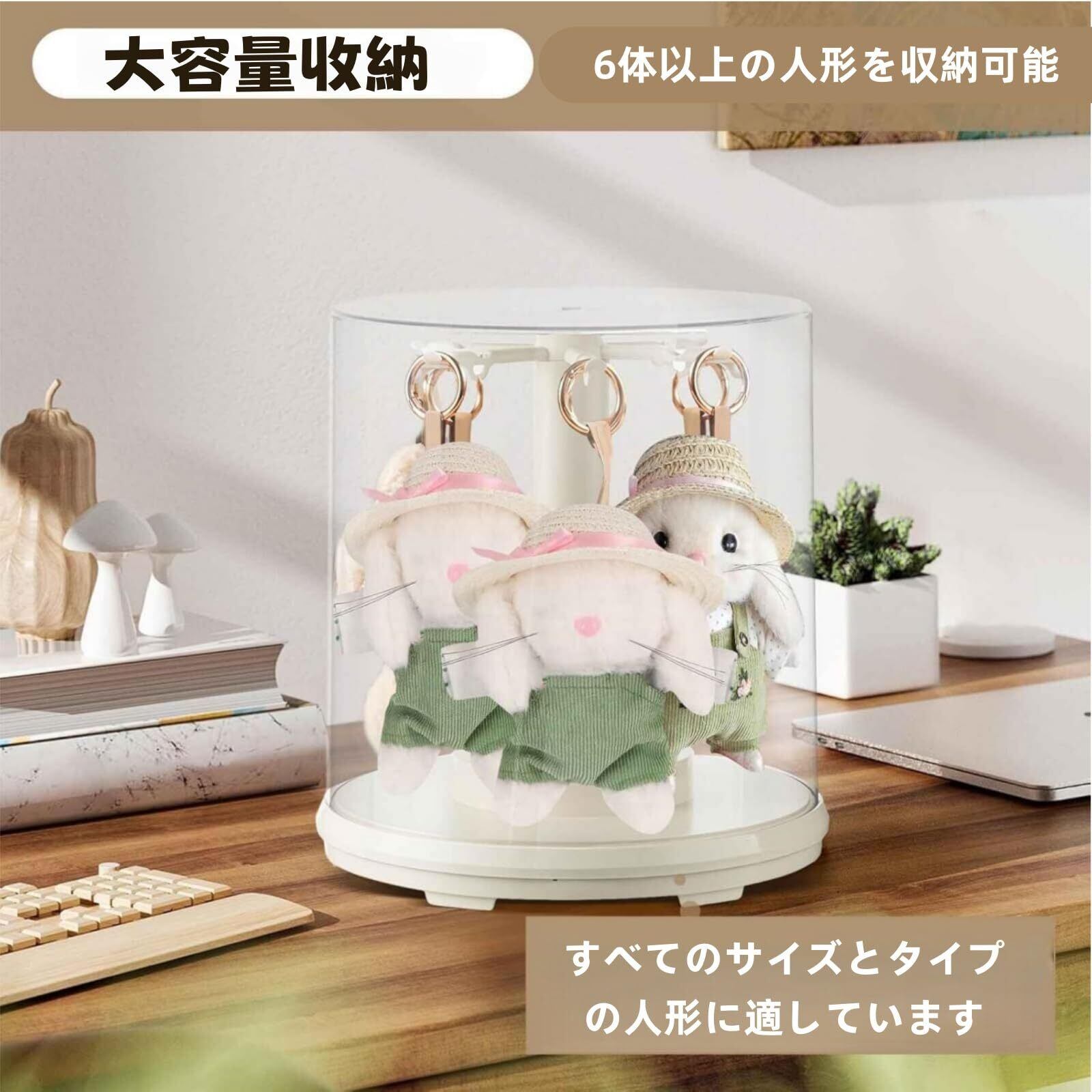 ラブブ 収納ケース ぬいぐるみ収納ケース 22.5*25cm 大容量 360°回転式ベース 音楽再生に連動した自動回転 アクリル素材 防塵防傷保護 積み重ね可能で省スペース 転倒しにくい 角丸デザイン お手入れ簡単 子供部屋収納 DIY人形コレクション展示対応 (ベージュ・オートマティック)