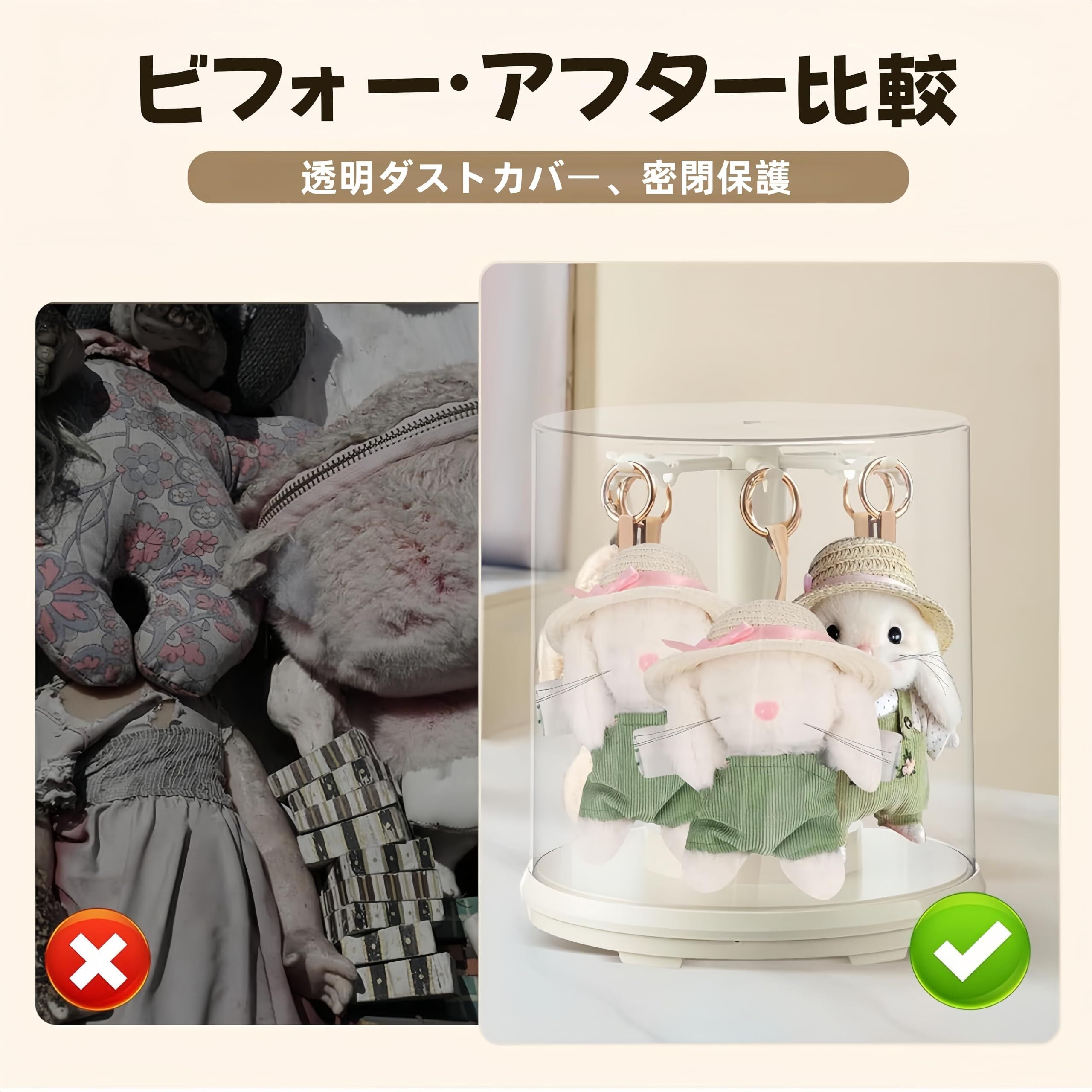 360° 回転可視設計:ぬいぐるみ ディスプレイケース は底部回転機構を採用,360 度スムーズに回転可能。透明アクリル素材で本体を製作,内部のぬいぐるみやラブブ コレクションを全方位から確認できる。子供部屋ではお気に入りのぬいぐるみを展示して部屋を可愛く飾り,収納する同時に「おもちゃのおしゃれな陳列棚」としても活用できる。回転時の音は 20dB 以下に抑制,静かな使用体験を提供します