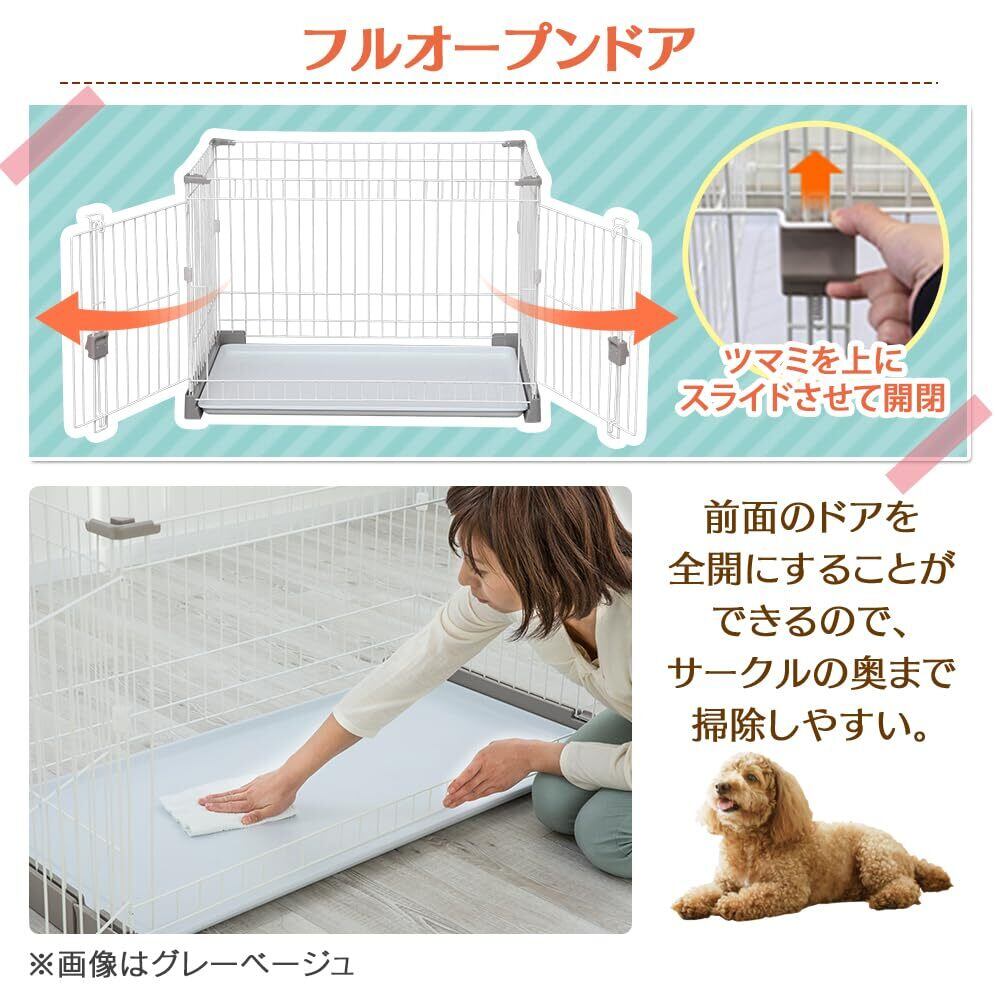 【フルオープン扉】:扉がフルオープンでき、サークルの奥までお掃除ラクチン。シーツ交換の時にも便利。