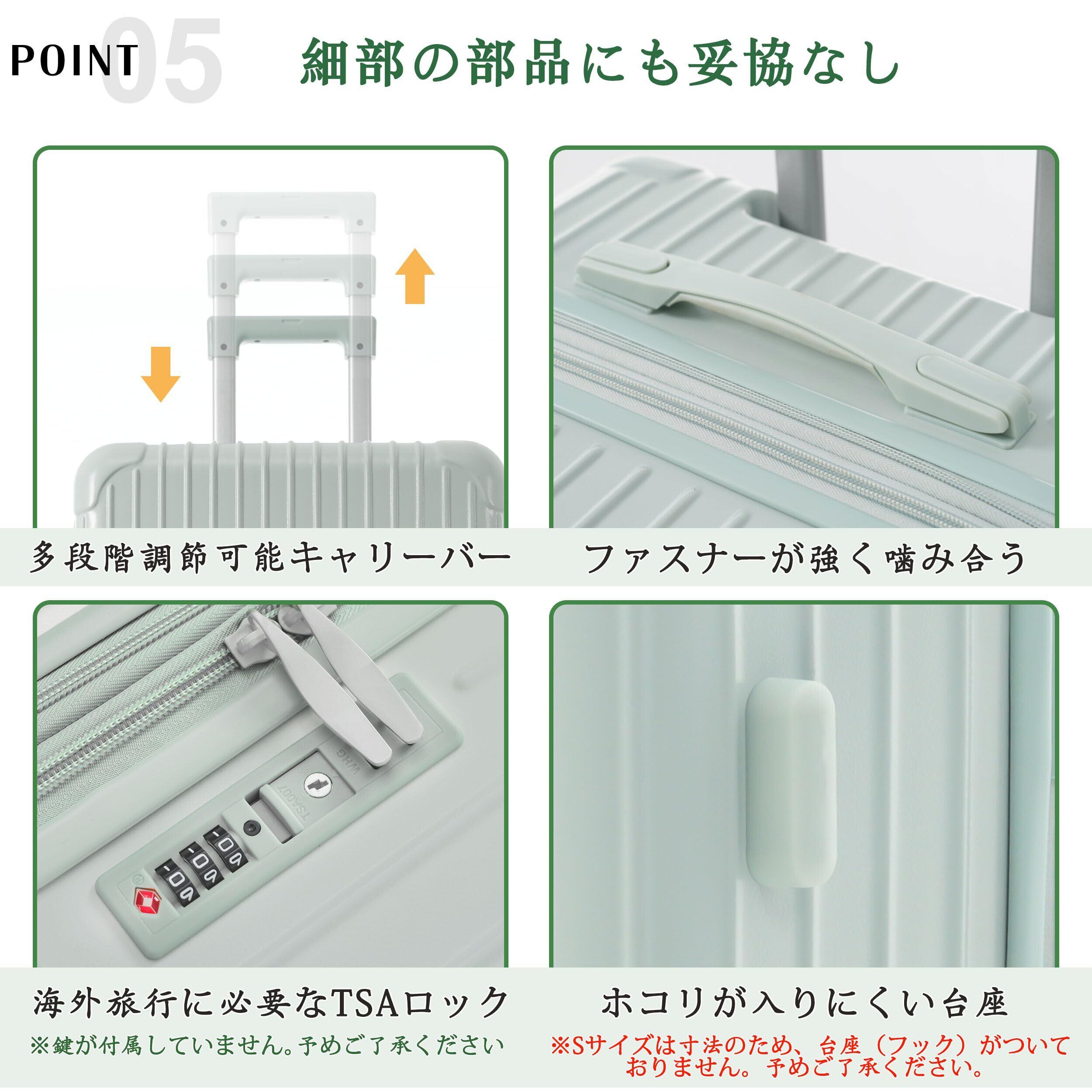 【商品仕様】※S size:外寸:約58*35.5*24.5 内寸:約49.3*35.4*23cm 本体重量:約3KG 、1~3泊に似合い。Sサイズは機内持込が可能なスーツケースです。飛行機内だけでなく、一人旅行や故郷帰りの新幹線やバスなどの車内移動も便利なスーツケースです。※M size:外寸:68.8*42*28.7cm 内寸:約59.1*39.8*26cm 本体重量:約3.9KG、4-7泊以上。※L size:※約77.5*47*34.5cm 内寸:約69.5*45*31.5cm 本体重量:約5KG、7泊以上。