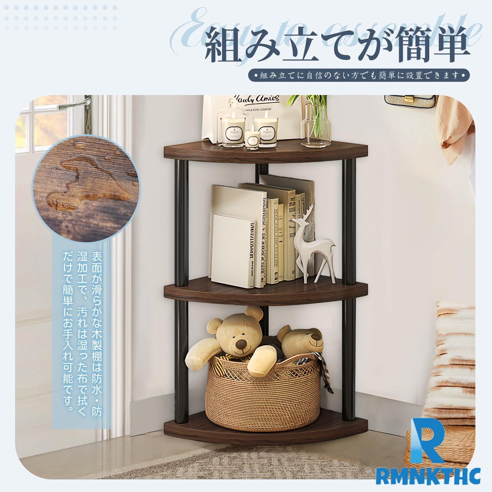 コーナーラック コーナー棚 木製 コーナーシェルフ 3段 おしゃれ オープンラック 省スペース 本棚 キッチンラック オープンシェルフ 収納ラック 組立簡単