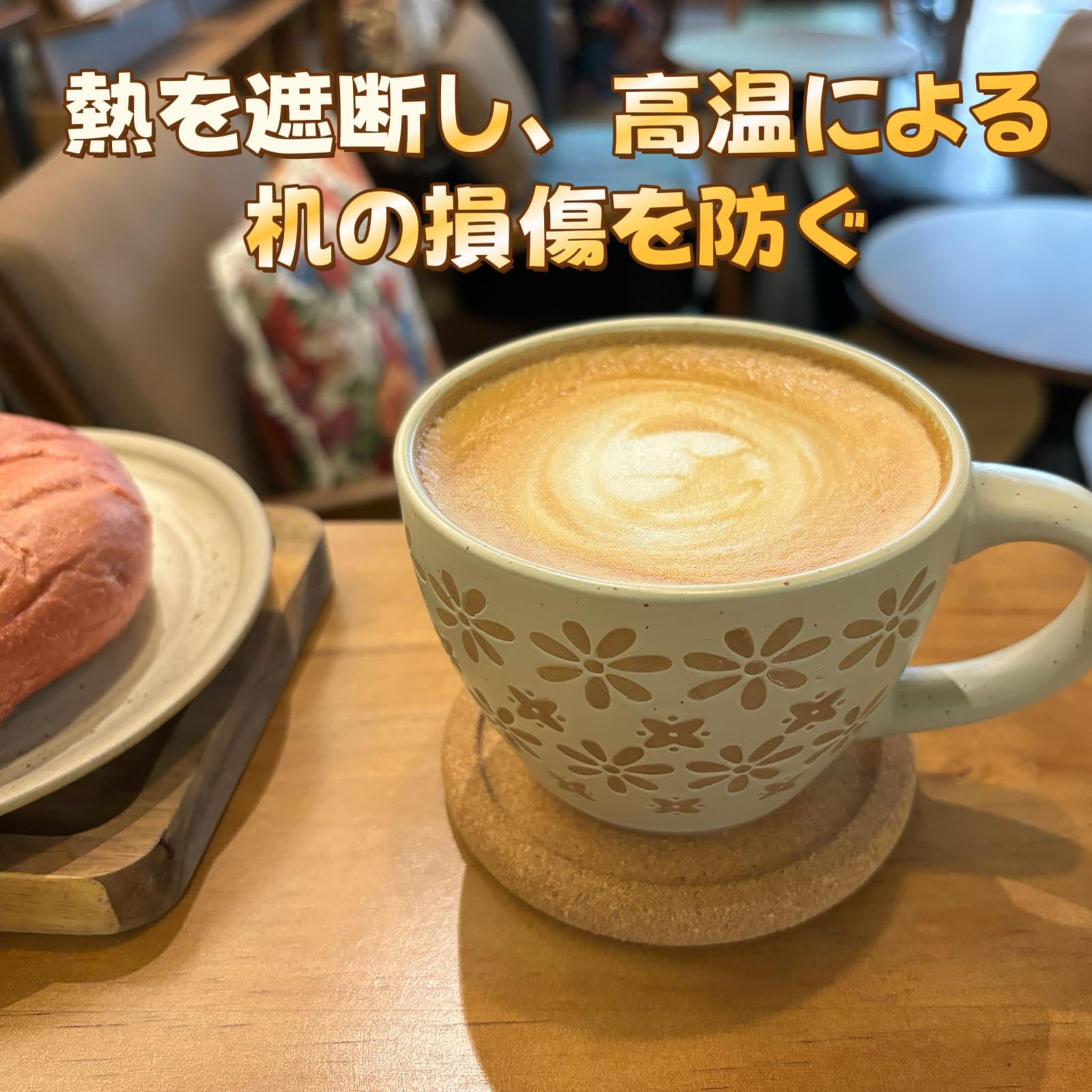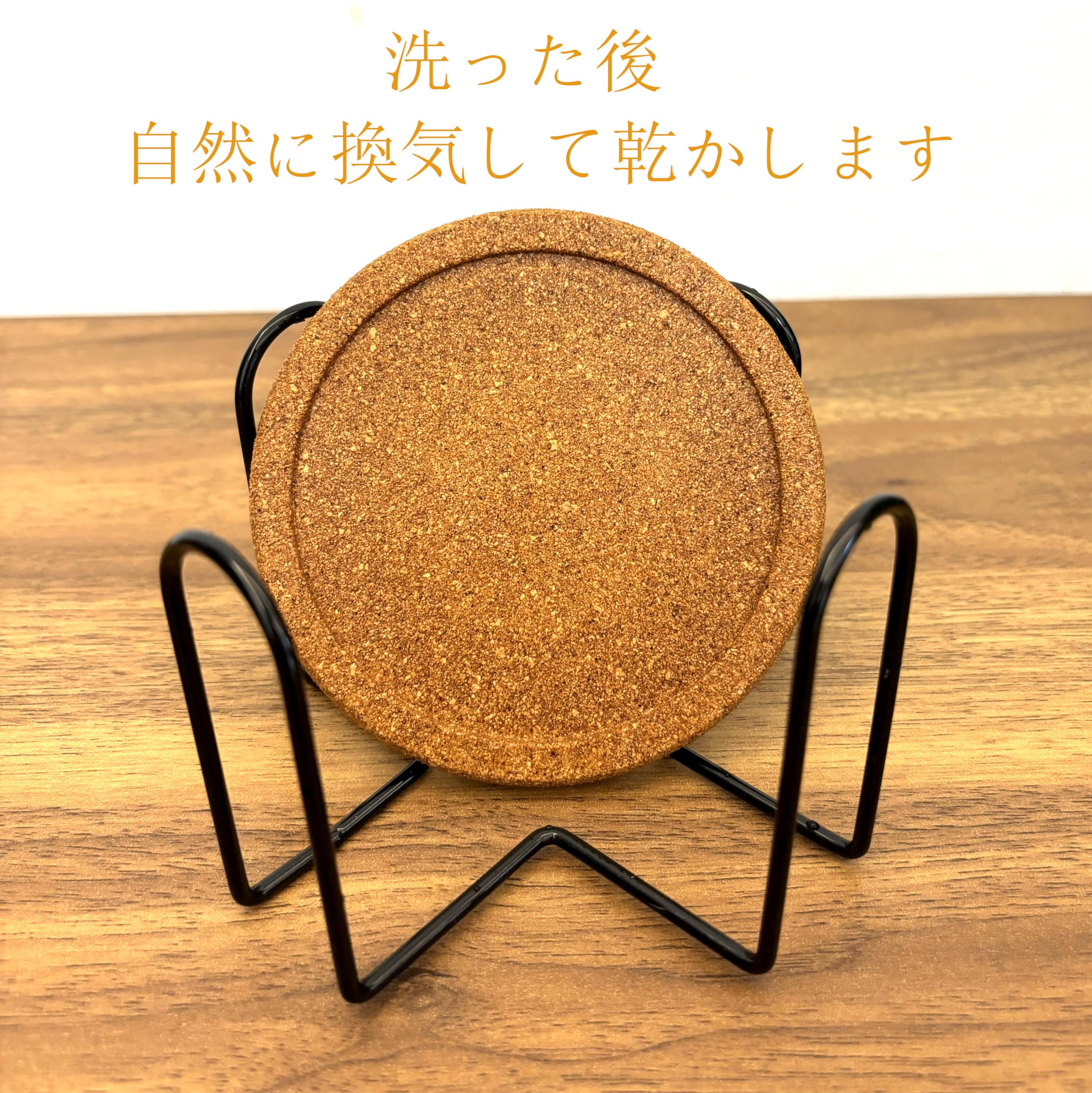 烏の樹コースター コルク 吸水 オシャレ 耐熱すべらない くっつかない 4個セッ 直径10cm厚さ1cm 収納棚付き円形 (溝4個)