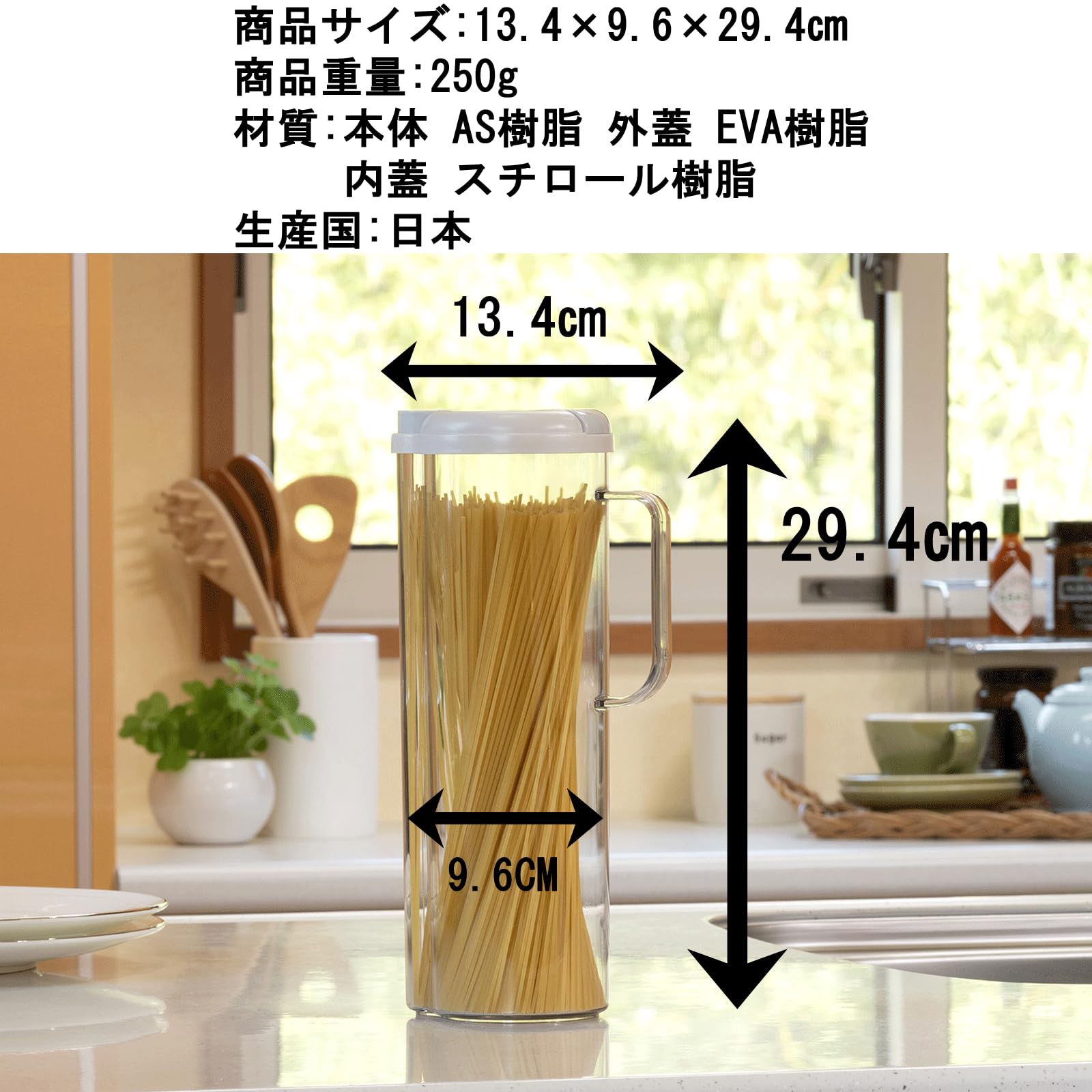 【サイズ】13.4×9.6×29.4㎝【重量】800g【容量】1400g【材質】[本体]AS樹脂[外蓋]EVA樹脂[内蓋]スチロール樹脂