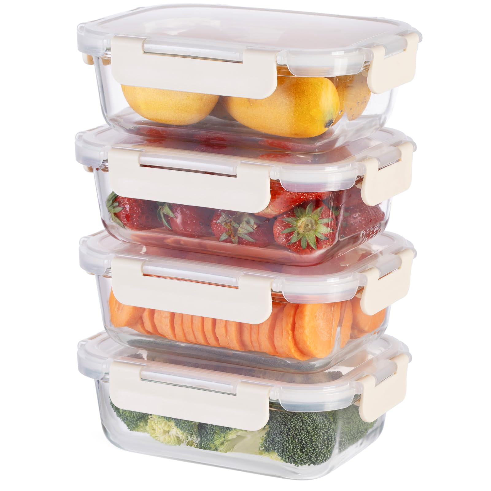 耐熱ガラス 保存容器 640ml 4個セット ガラス密閉容器 電子レンジ オーブン 食洗機対応 ガラスタッパー 冷凍 積み重ね可能 蓋付き BPAフリー 長方形