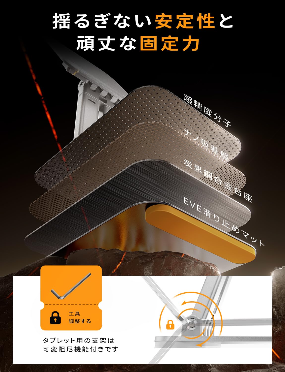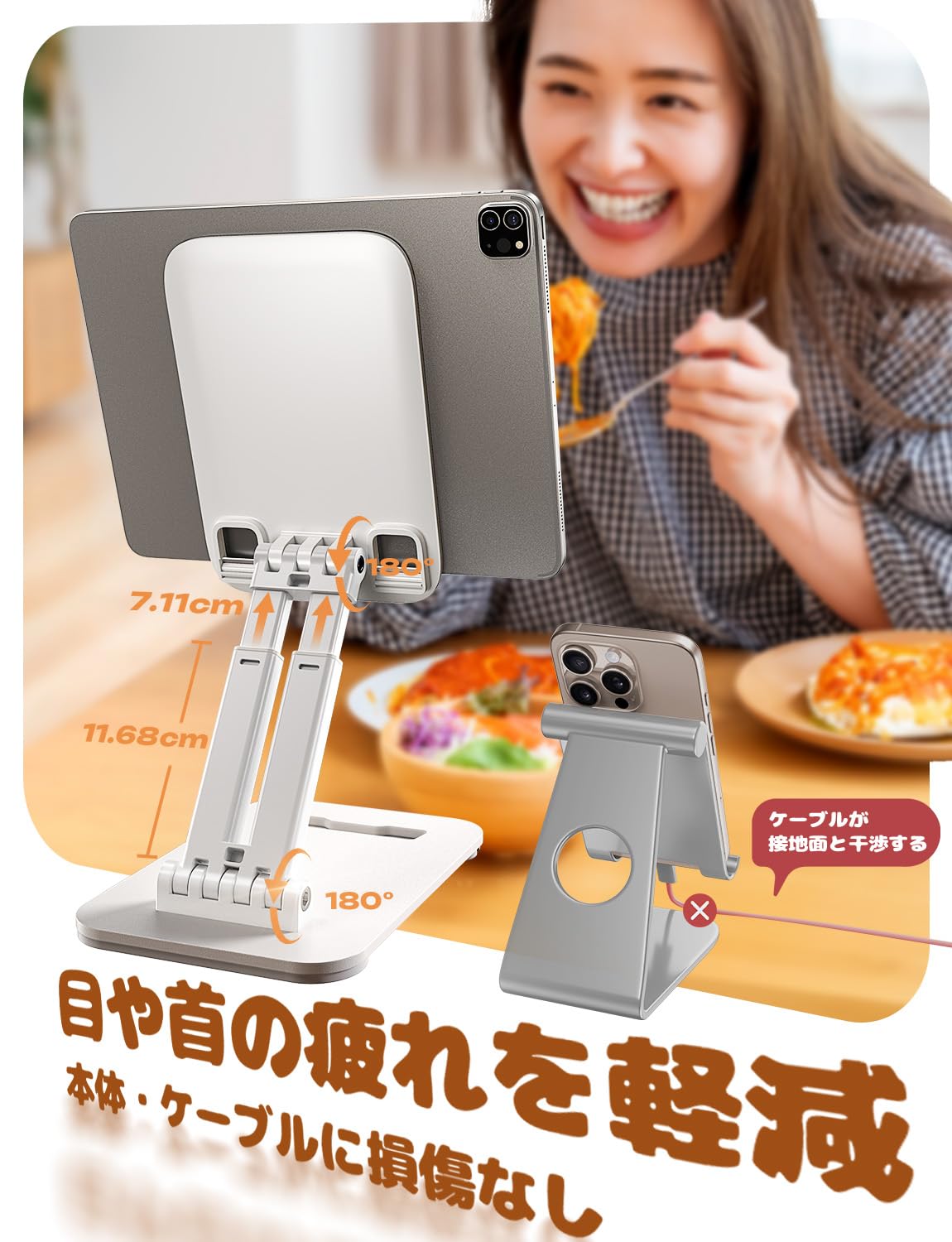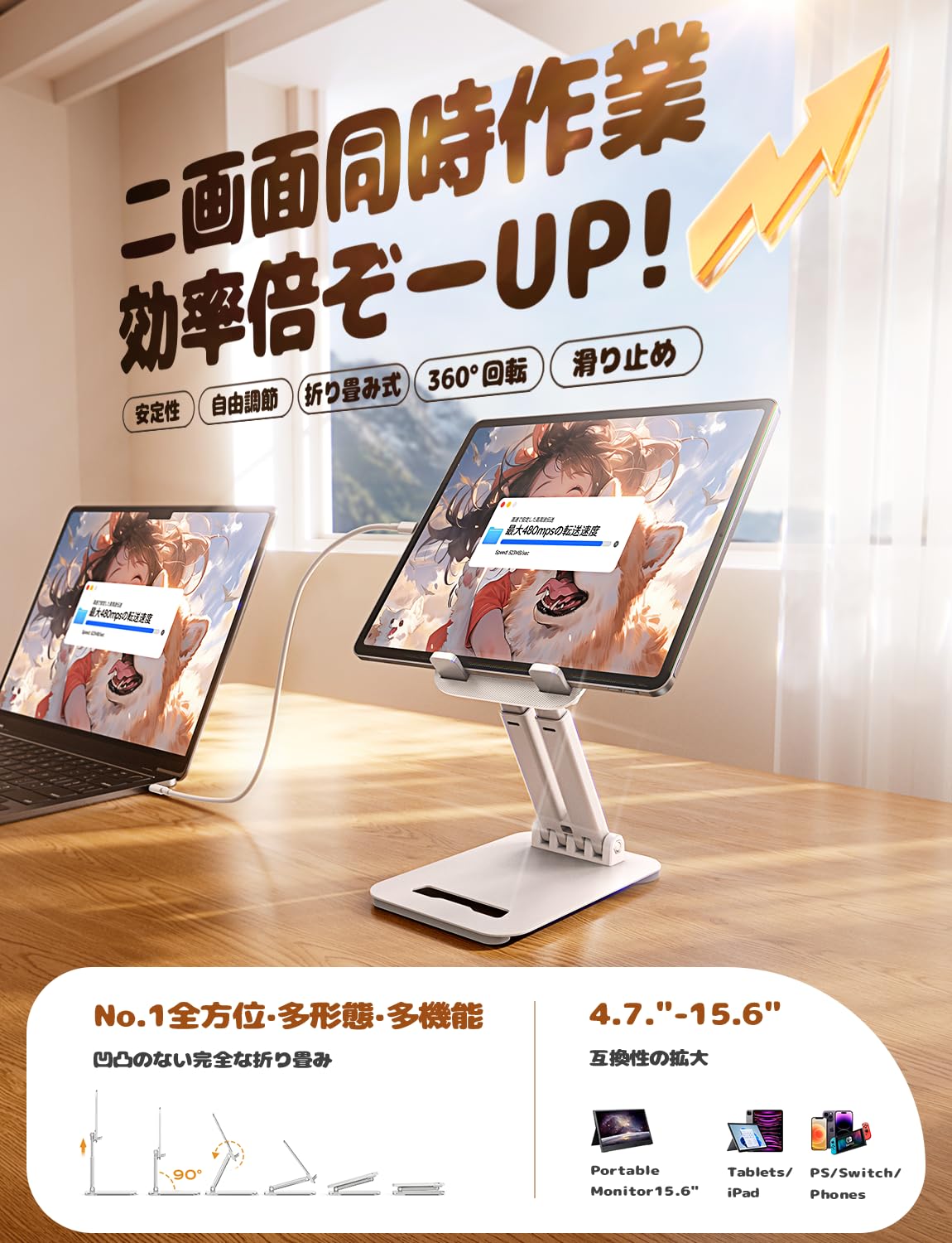 【放熱性抜群&多様なシーンに活躍 モバイルモニター スタンド】冷却しやすいアルミ合金iPad スタンドで放熱が早い、タブレットなどのデバイスの自然放熱を実現。仕事中や掃除、キッチンでもメールやメッセージ受信を確認できるのでとても便利。アニメ、映画、電子書籍、Facetime、在宅ワーク、デスクワーク、オフィスワークを楽しむ時にも活躍しています。