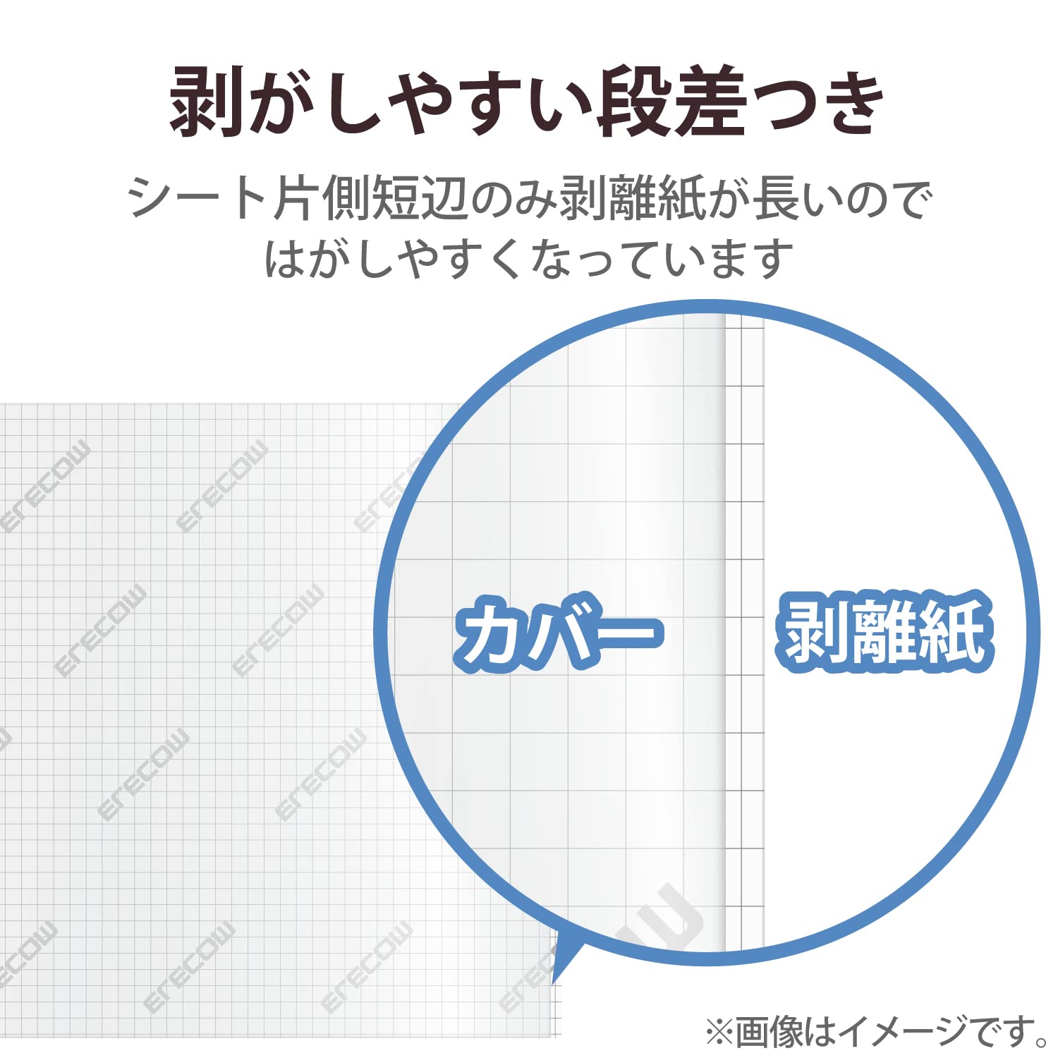 ■シート片側短辺のみ剥離紙が長く剥がしやすいです。