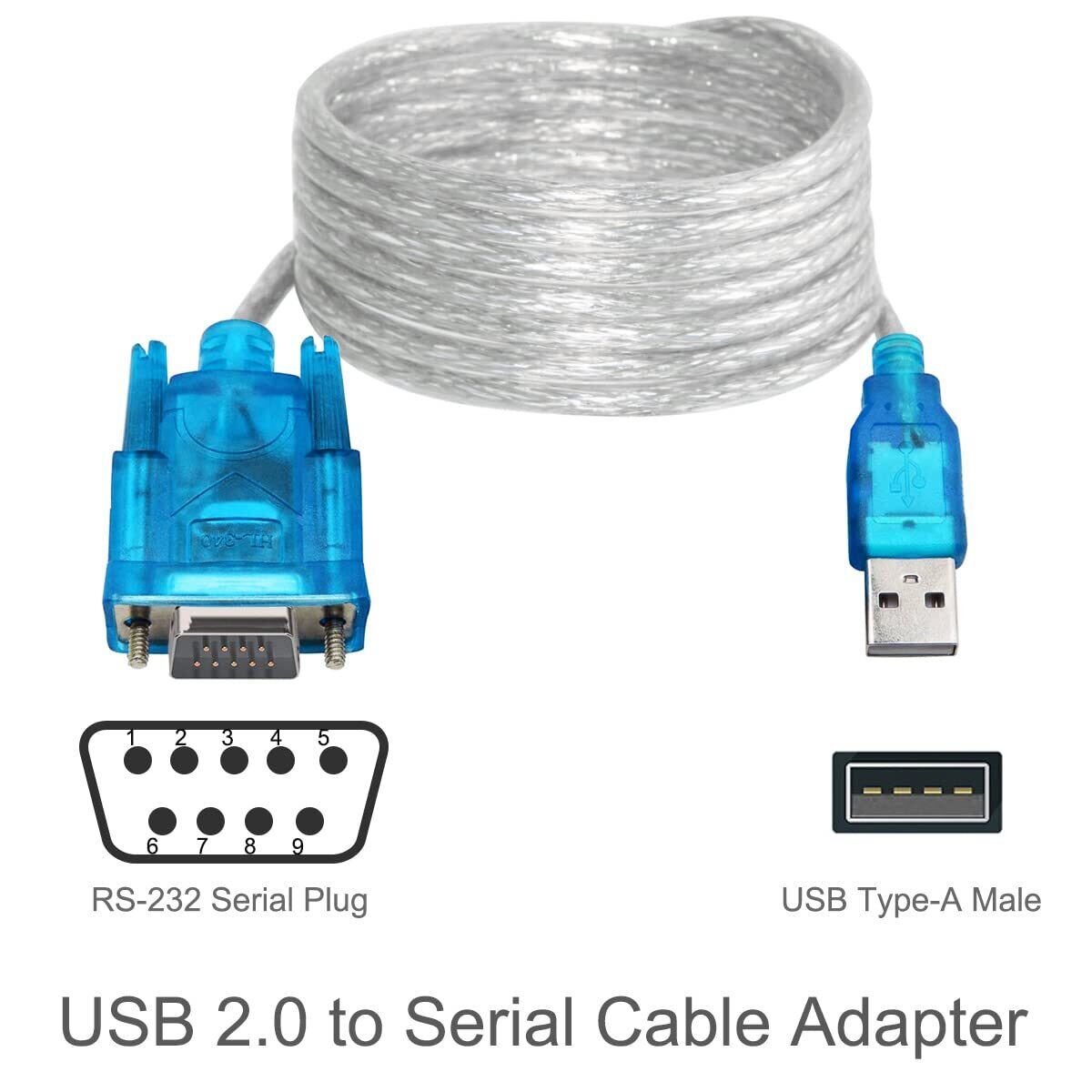 USBシリアル変換ケーブルRS232 9ピンオスDB9-USB 2.0 オス変換シリアルケーブル、チップセットとDB9メス-メス変換コネクタ付き、Windows 10 8 7用、2個