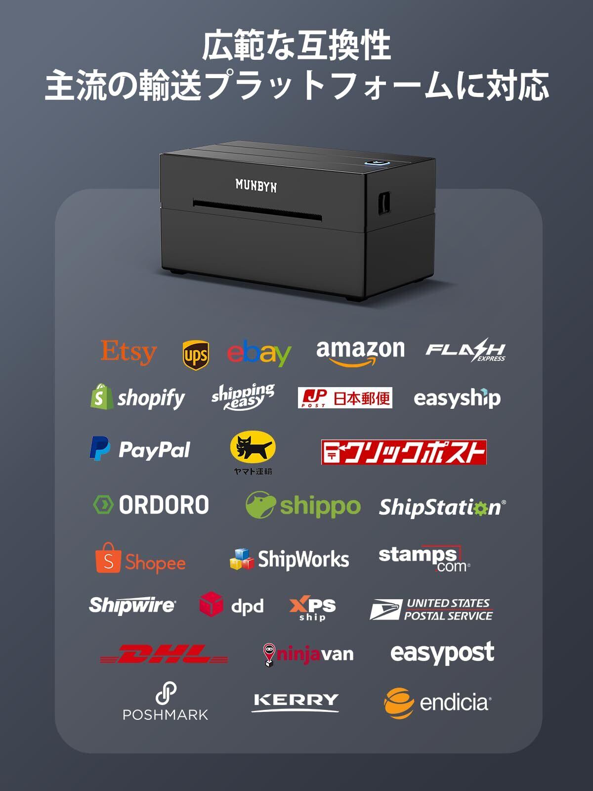 MUNBYN Bluetoothラベルプリンター 180mm/s 高速印刷 ワンクリック設定 ホーム&オフィス用 日本郵便対応(クリックポスト) 幅108mm(最大) A6ラベル対応 Windows&Mac対応 203dpi 専用エディタ付き インボイス登録済 ブラック