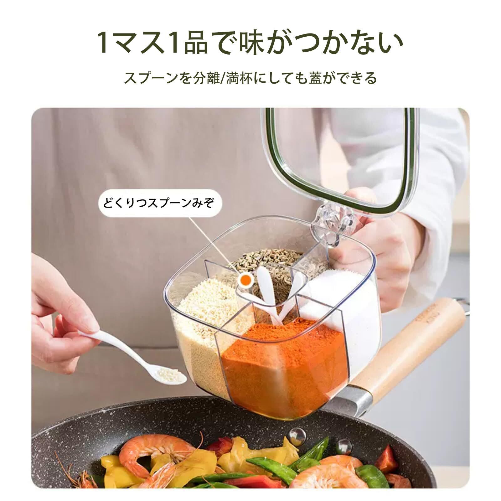 調味料入れ 5つ仕切り 透明 塩 塩入れ容器 大容量 キッチン収納 台所 調味料容器 食器棚 収納 グッズ 1個