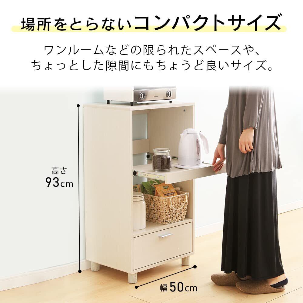 アイリスオーヤマ キッチンボード レンジ台 スライド棚 幅50×奥行37×高さ93.8cm オフホワイト KBD-500