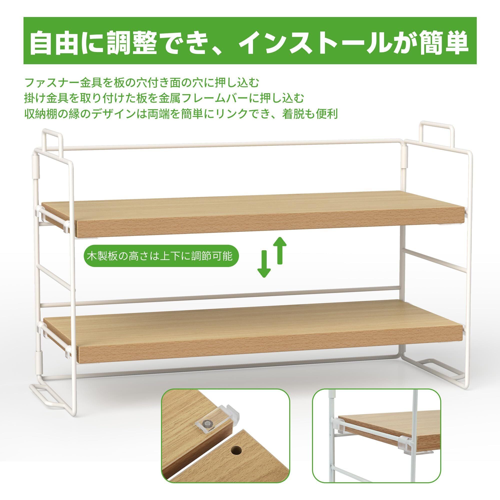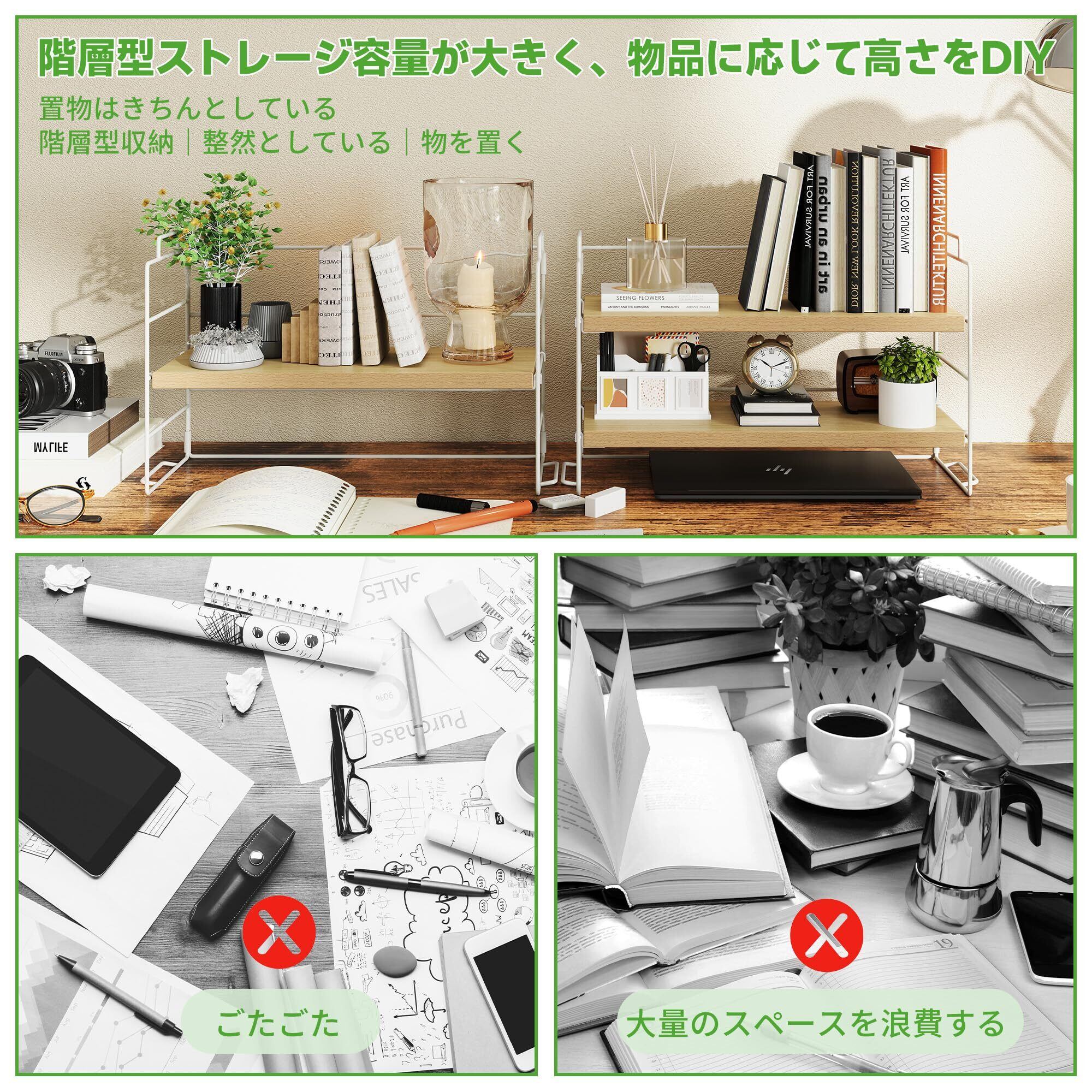 オープンラック 本棚 デスク収納 2段 デスク上置き棚 卓上ラック 幅37×奥行16.5×高さ24cm デスク上収納ラック本棚 可動式 折りたたみ 机上ラック 木製 組み立て簡単 焼き漆細工 北欧風 卓上 矩形 安全の丸い角 安定した構造 小さなトップシェルフ(原木の色+白いフレーム 棚板2枚)
