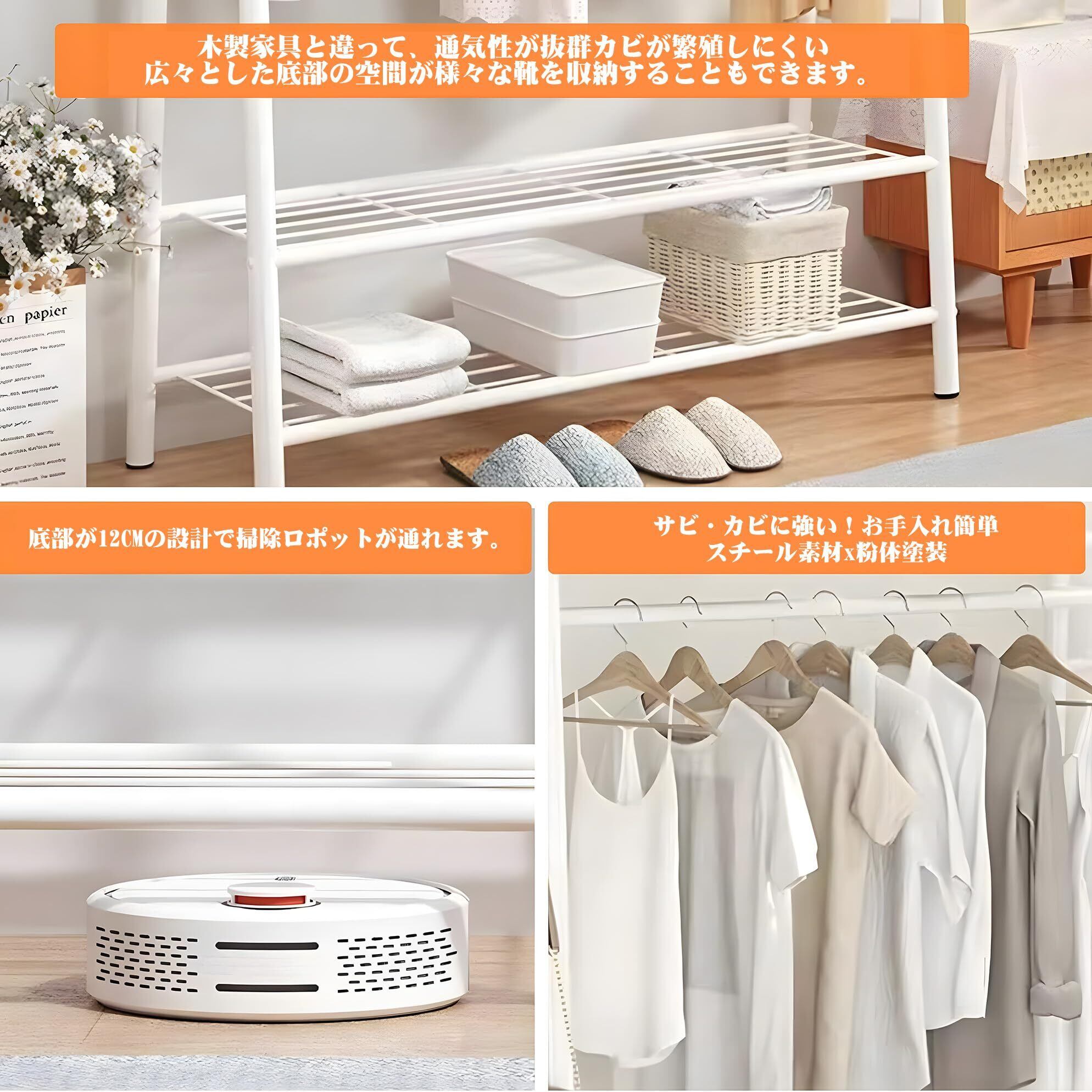 【置ける・吊る・掛ける棚ラック】この洋服ラックは最新のパイプハンガーシリーズで、上中下の異なる3段メッシュ棚が薄い布団や収納ボックスから靴、タオルや小物までご自由にたくさん置いて使っています。また高さ94.5CMの掛ける空間が横幅82CMの太いパイプボールを採用し、子供の制服、夏シャツや洋服などをスッキリ収納できます。それにメッシュ棚の底部が12CMの設計でルンバなど掃除ロボットも通れて、気楽に服の収納以外に、日常の部屋クリーンケアも便利です。